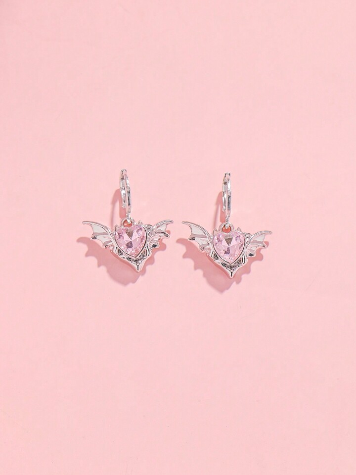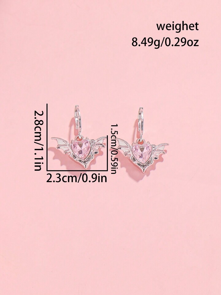 Kawaii 1 Coppia di orecchini con pendente a forma di cuore e ali, stile gotico europeo e americano, perfetti per la Festa della Mamma, regalo