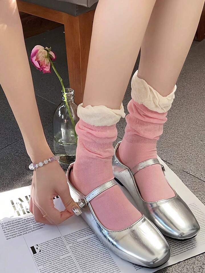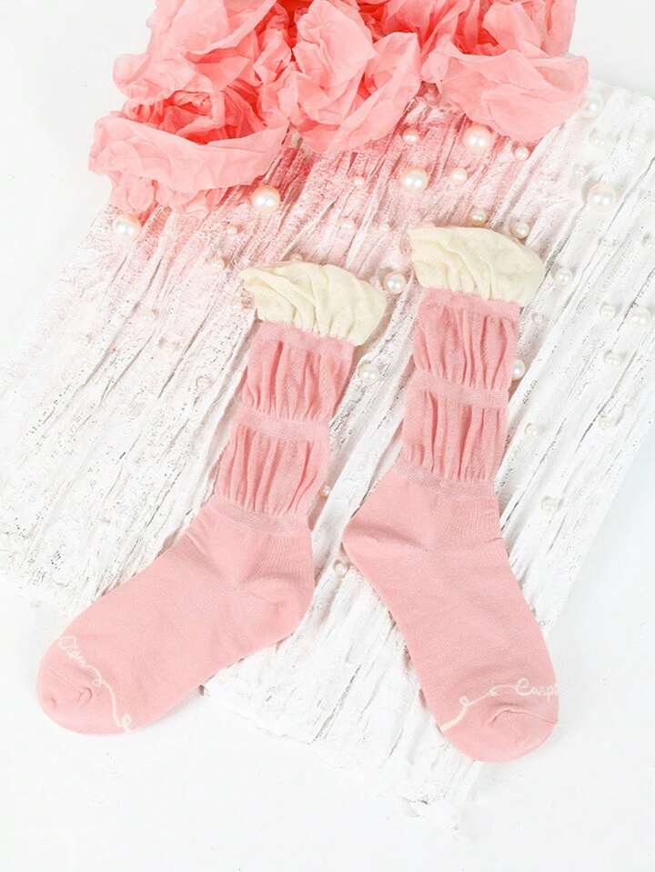 Kawaii 1 Paio Calze Lolita Stile A Metà Polpaccio Con Bocca A Bolle E Pizzo Traspirante In Blocco Di Colore Per Balletto