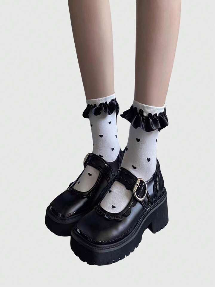 Kawaii Donna 1 paio Calze girocaviglia modello a cuore con bordo a volant