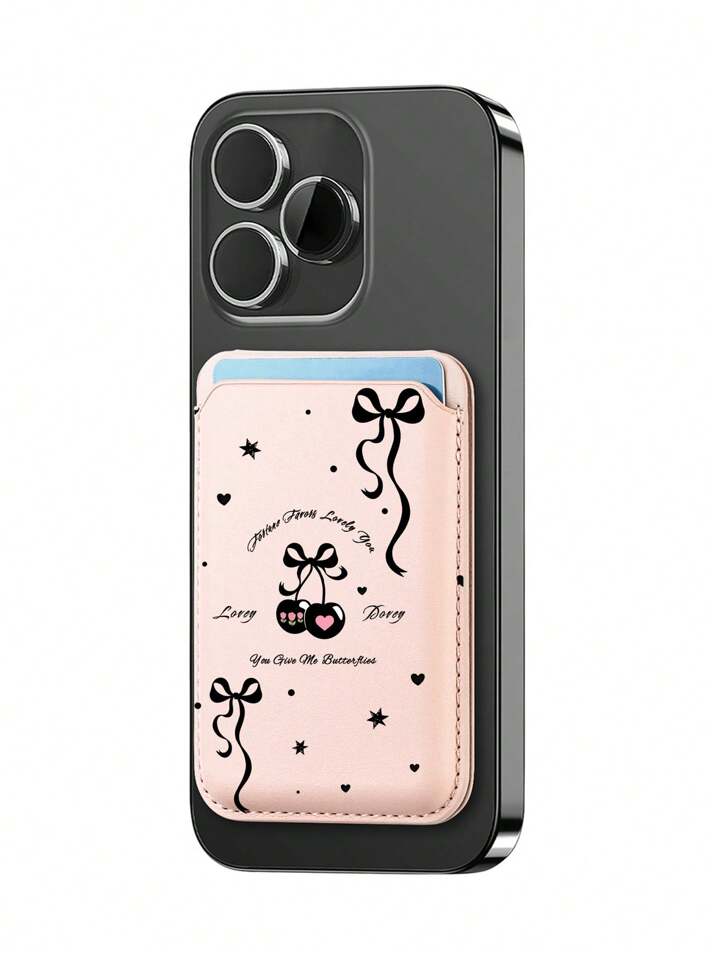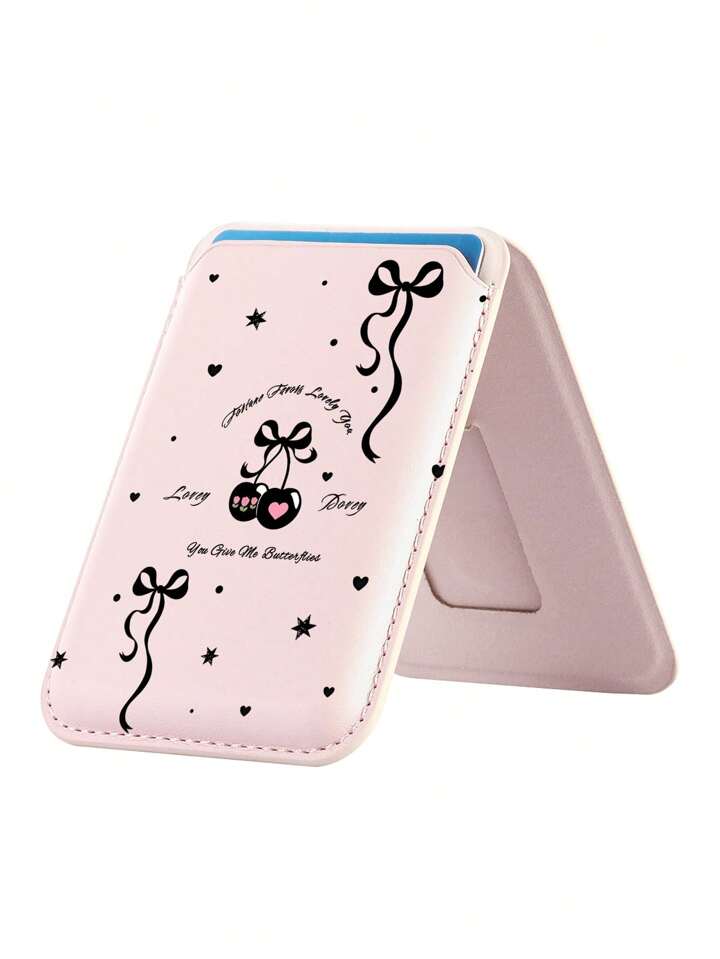 Kawaii 1 pezzo Supporto magnetico per telefono e porta carte con decorazione a cuore rosa e fiocco, perfetto per il ritorno a scuola (posizione della stampa casuale)