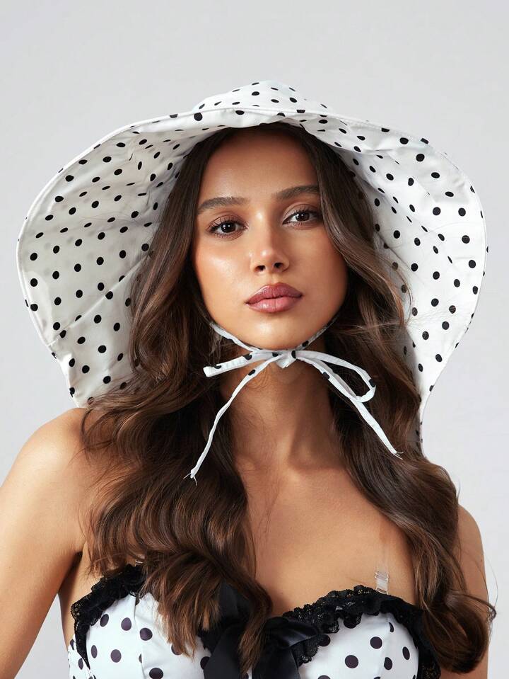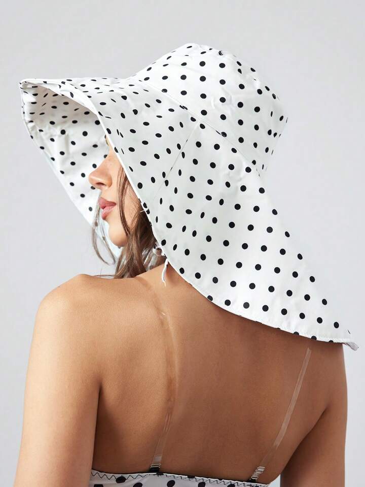 Kawaii 1 pezzo Cappello a secchiello ampio ed elegante con stampa a pois, cappello da sole estivo per protezione solare da donna, stile giapponese