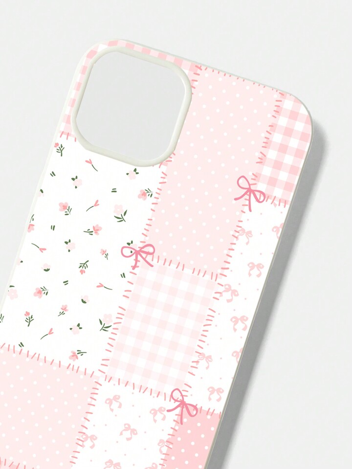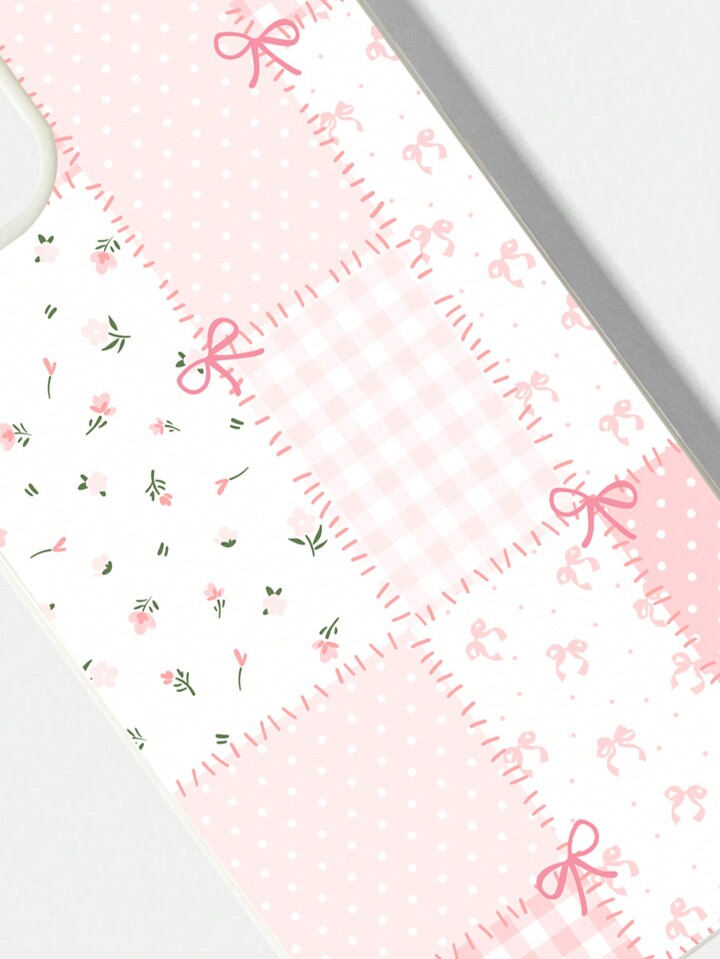 Kawaii 1 pezzo Custodia per telefono rosa lucido con motivo a quadri e floreale, compatibile con iPhone 11 12 13 14 15 Pro Max, custodia per Apple