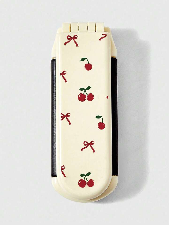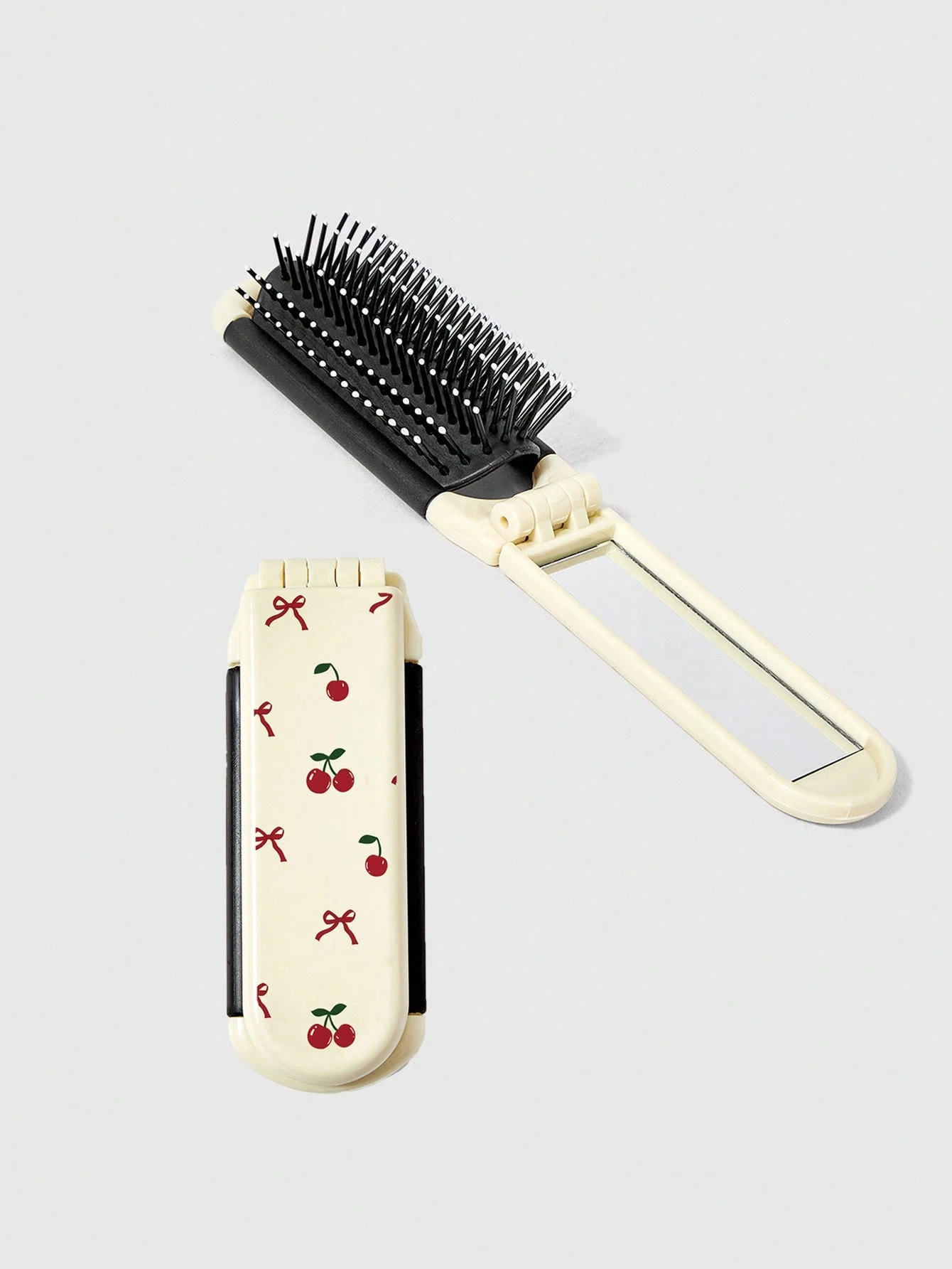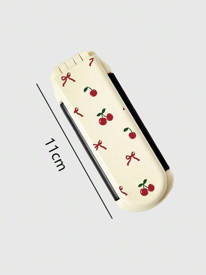 Kawaii 1 pezzo Pettine pieghevole con specchio, motivo sorriso di ciliegia, torna a scuola, strumento di styling portatile tutto in uno