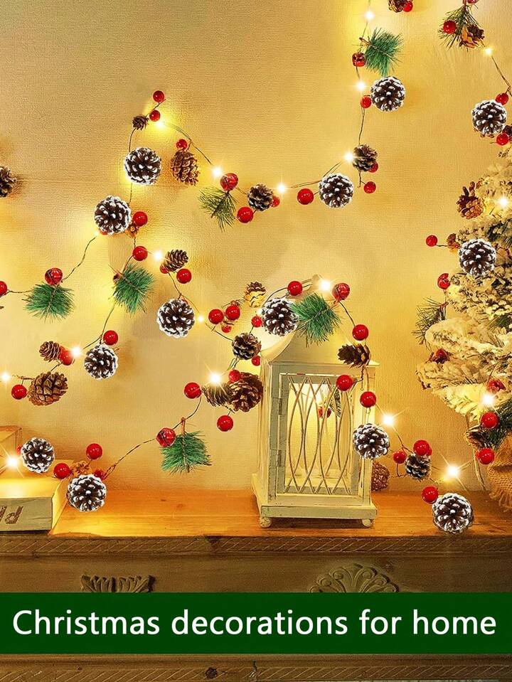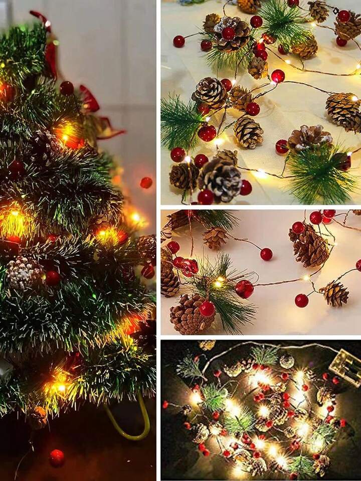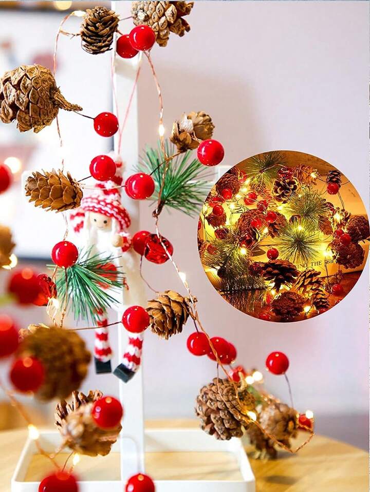 Kawaii 1 pezzo Natale pine cone decorato Stringa di luci con 20 pezzi pine cone Lampadina