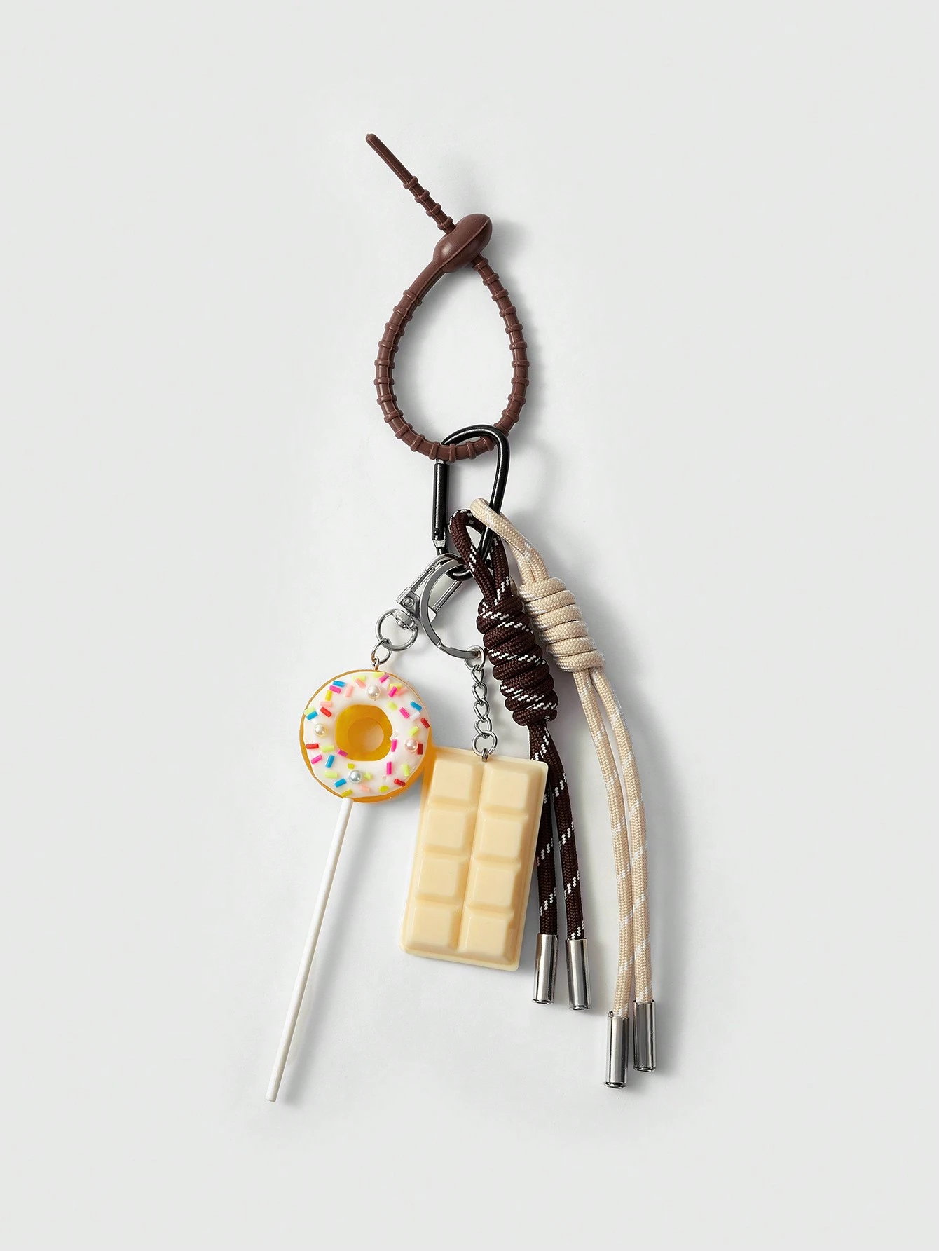 Kawaii 1 pezzo Accessorio carino in corda intrecciata con ciondolo a forma di lecca-lecca di fragola e cioccolato per borse, colore rosa