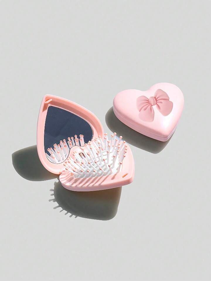 Kawaii 1 pezzo Specchio pieghevole con pettine, design carino con cuore rosa e fiocco, adatto per uso quotidiano, regalo per vacanze, per il ritorno a scuola