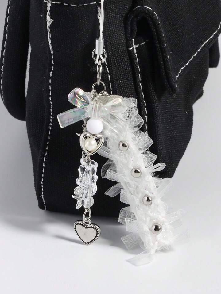 Kawaii 1 pezzo Ciondolo carino Y2K in rete bianca a forma di orso con stella, accessorio per borsa o pendente per telefono