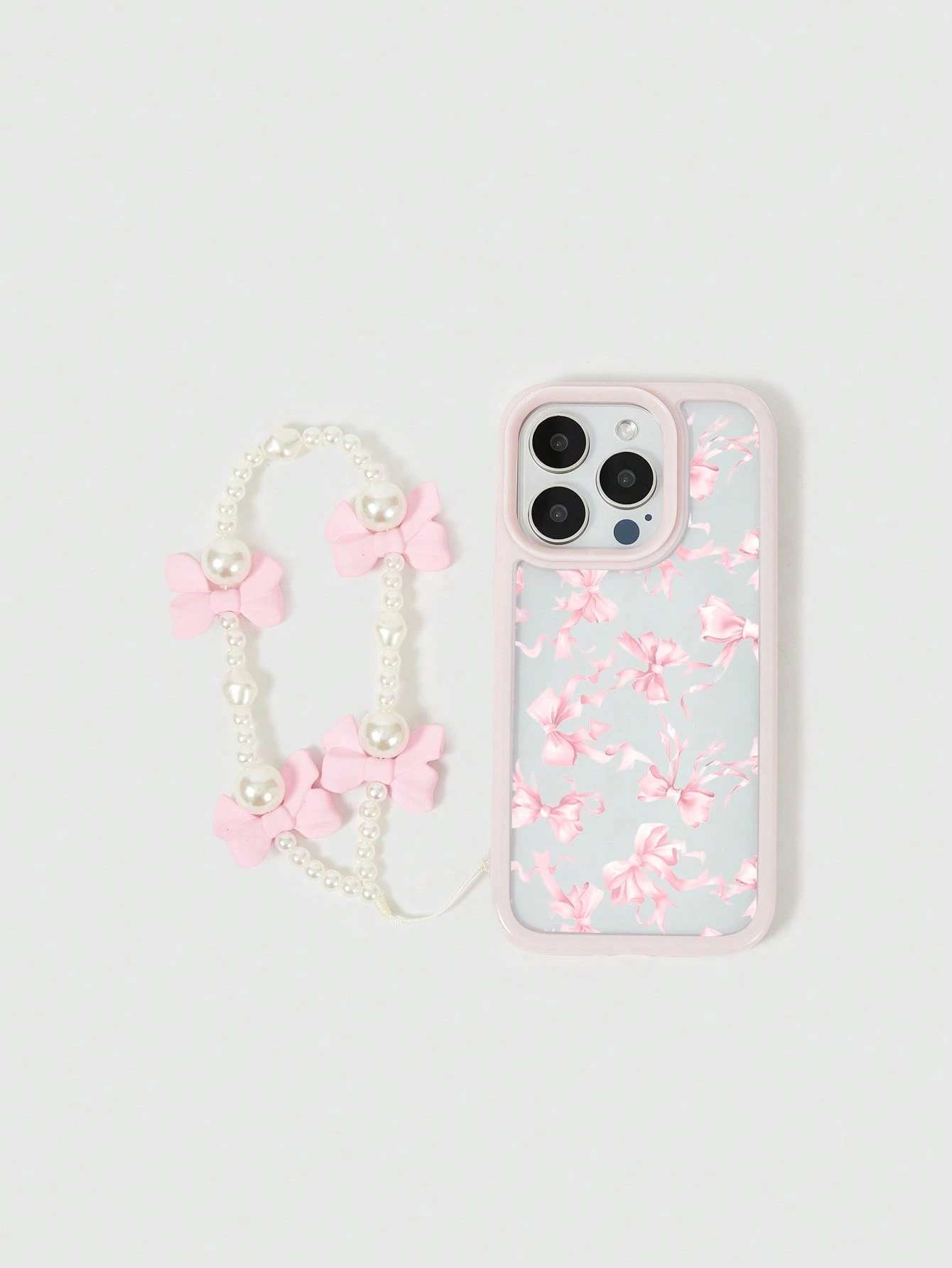 Kawaii 1 Pezzo Elegante Custodia per Telefono con Fiocco Rosa, Adatta per 11 12 13 14 15 Pro Max