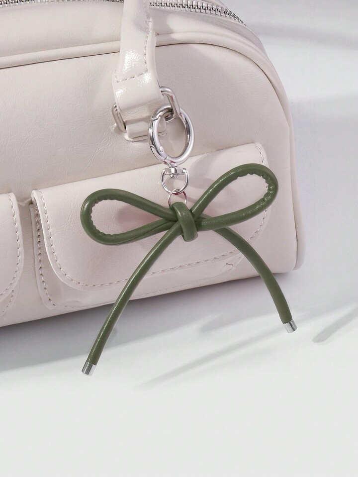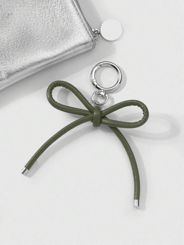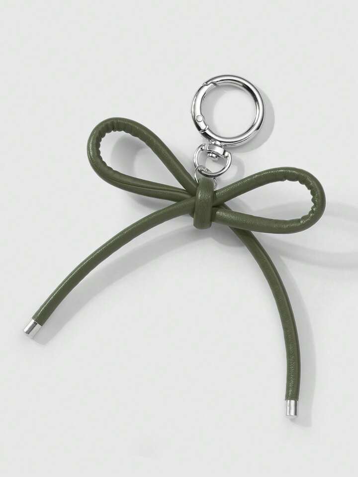 Kawaii 1 pezzo Portachiavi elegante casual in pelle verde militare con fiocco, adatto per uso quotidiano delle donne, regalo per le vacanze