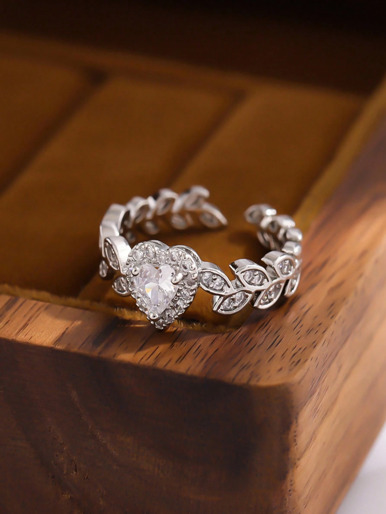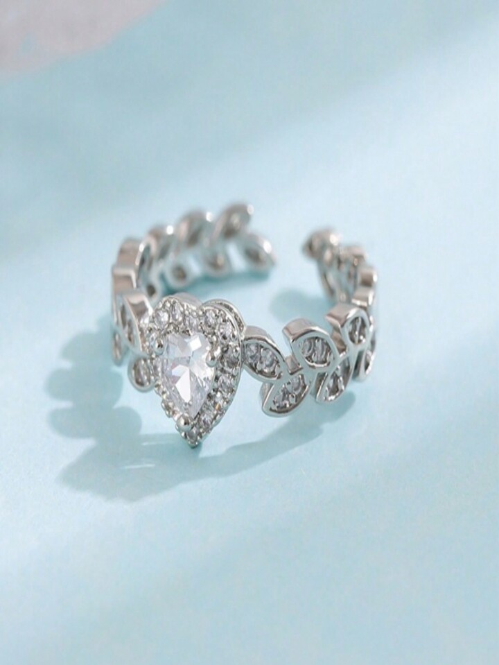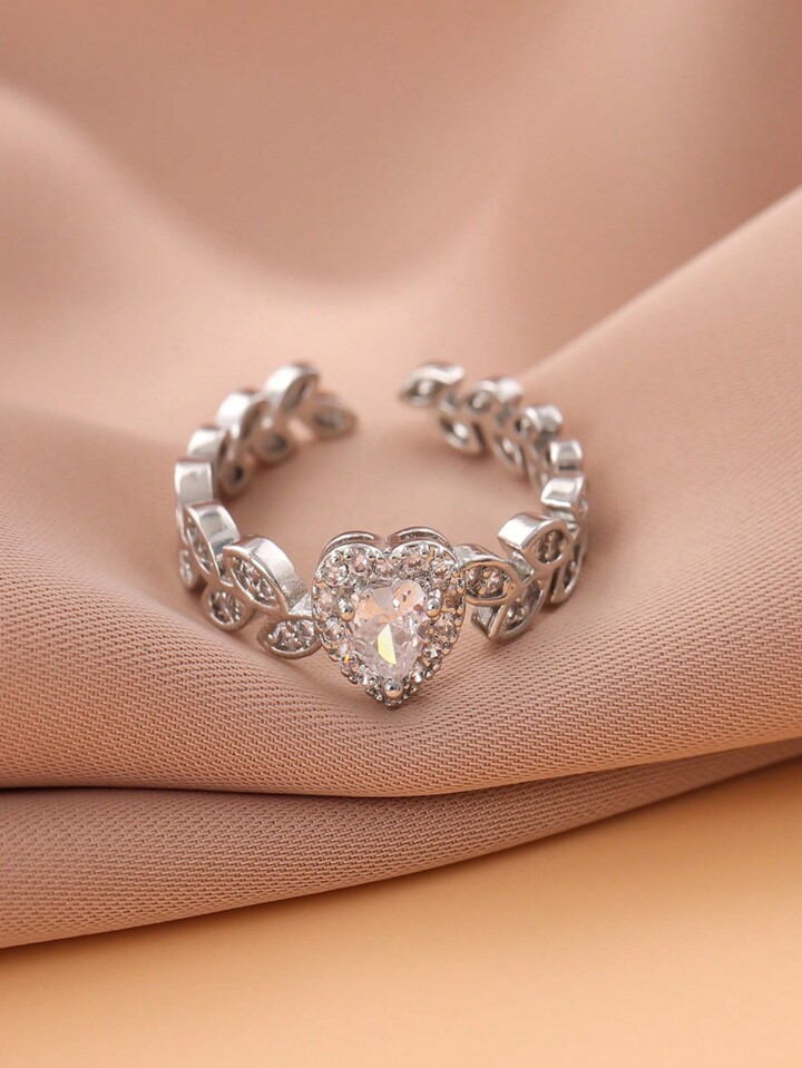 Kawaii 1 pezzo Anello alla moda con strass & cuore & design foglia personalizzato aprire