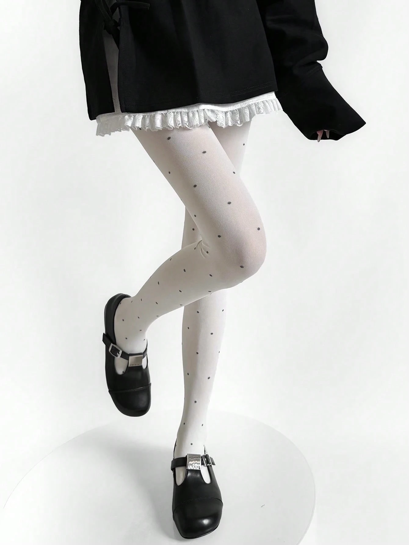 Kawaii 1 pezzo Calze velate bianche con pois alla moda, collant/calze/leggings estivi sottili modellanti per le gambe delle donne