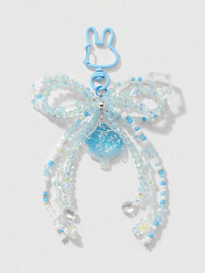 Kawaii 1 pezzo Set di gioielli tematico mare blu fatto a mano, composto da perline cristalline a fiocco, stella, pendente a balena in resina blu e portachiavi a coniglio, accessorio elegante e alla moda, regalo per donna