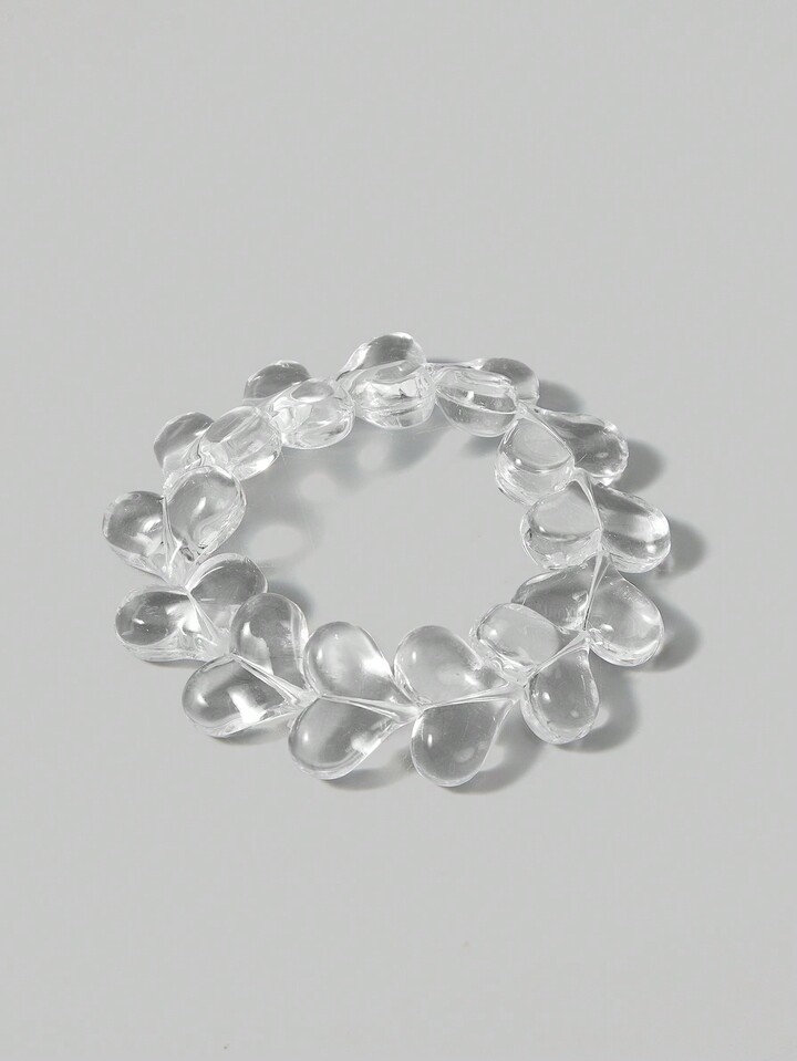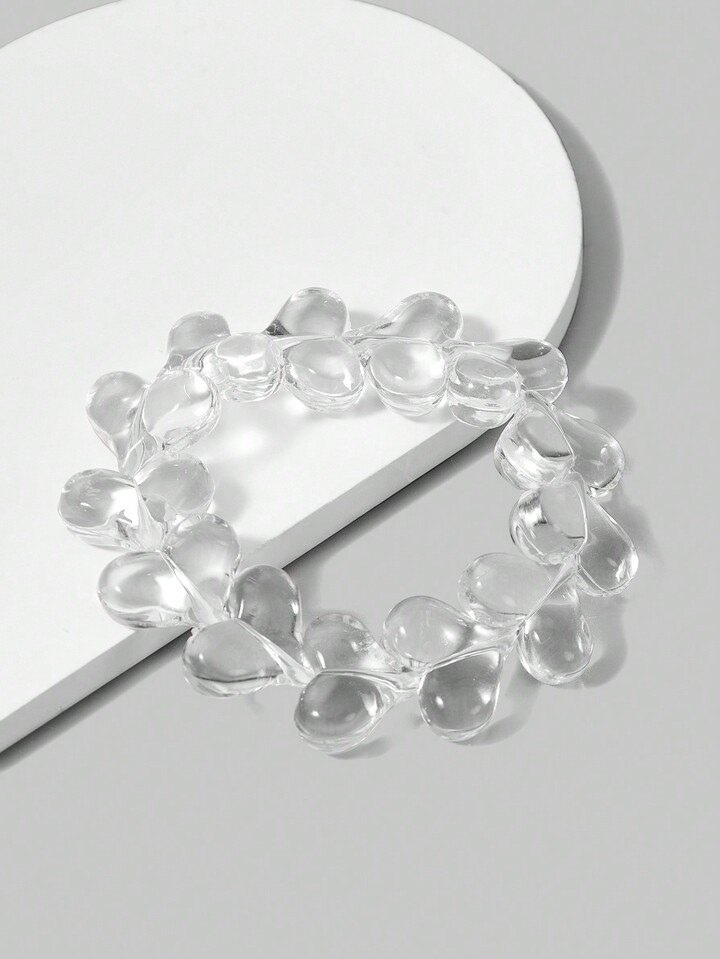 Kawaii 1 pezzo Braccialetto fatto a mano in stile minimalista con perle acriliche trasparenti a forma di cuore di sirena