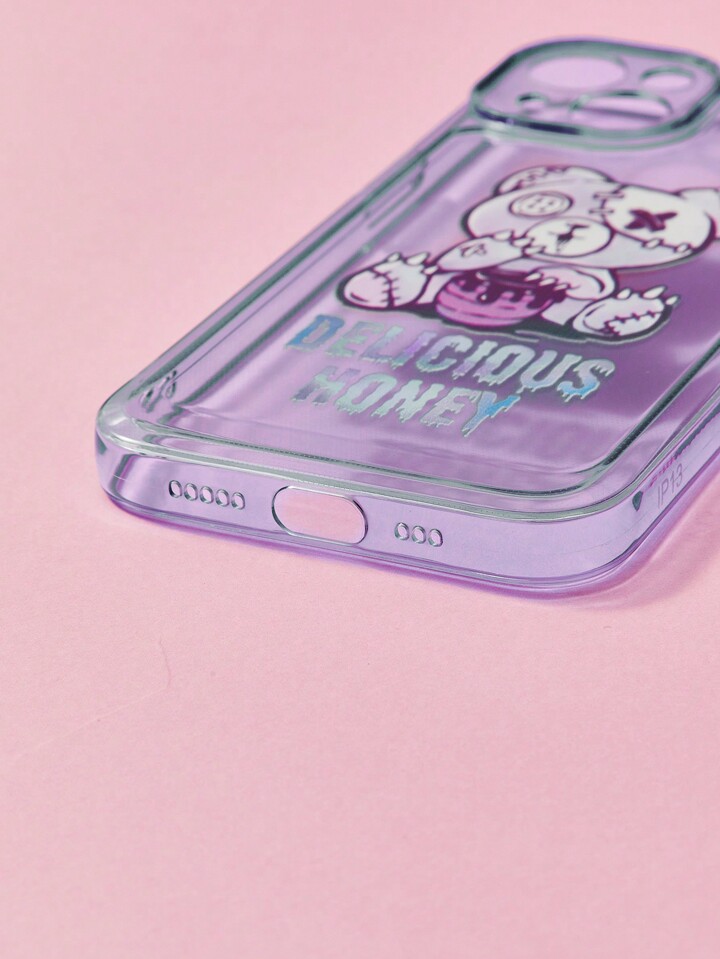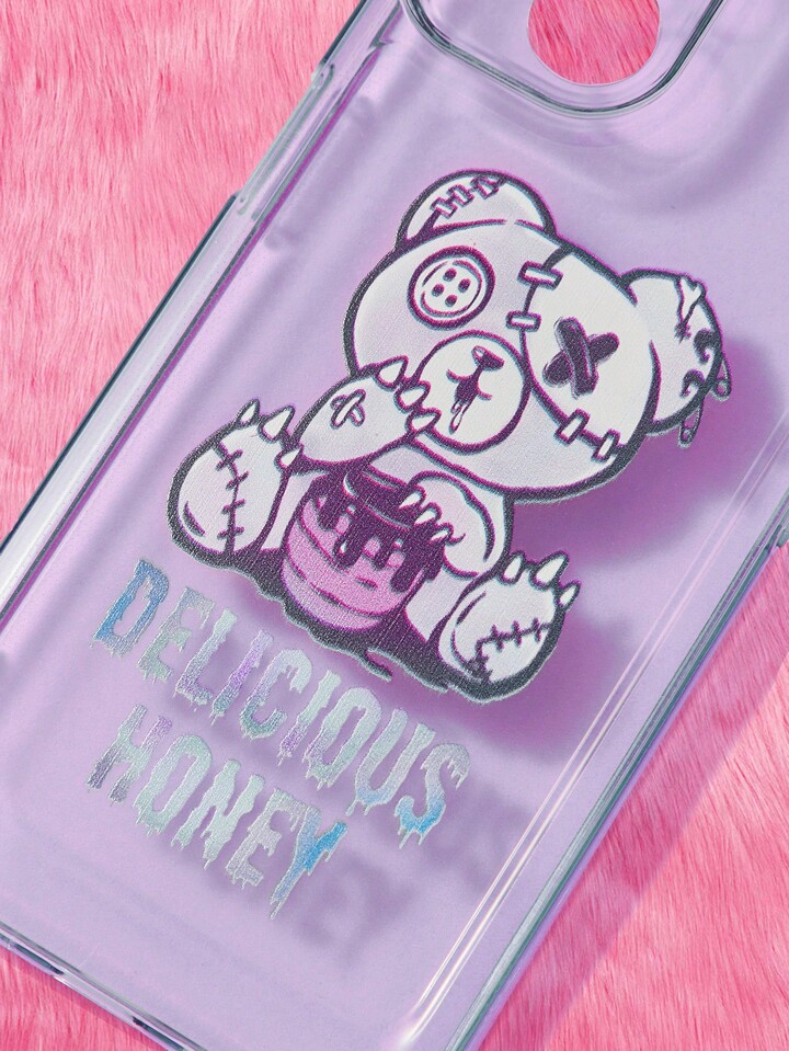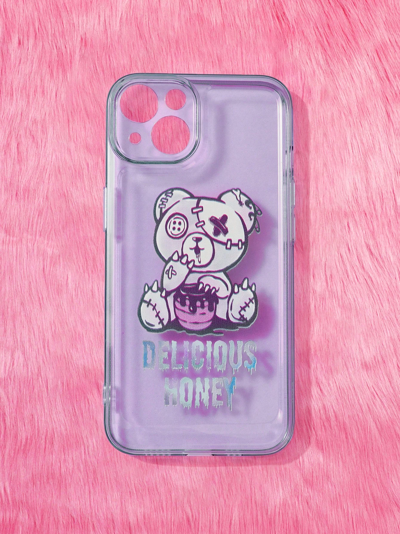 Kawaii 1 pezzo Custodia per telefono con stampa di orso e lettera, compatibile con iPhone