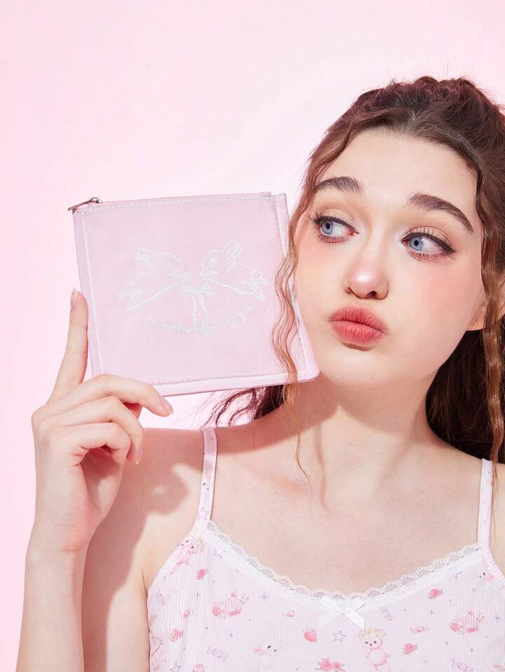 Kawaii 1 pezzo Portamonete lettere con grafica coniglio zip