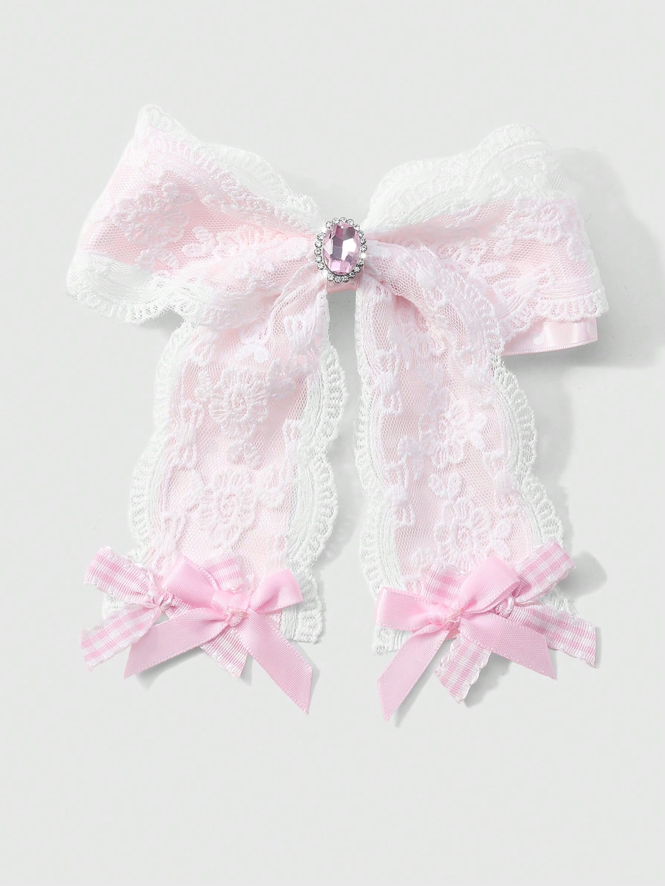 Kawaii 1 pezzo Fermaglio per capelli minimalista ed elegante con fiocco in rete color champagne, perle finte e brillantini, adatto per uso quotidiano di donne e ragazze, regalo per le feste