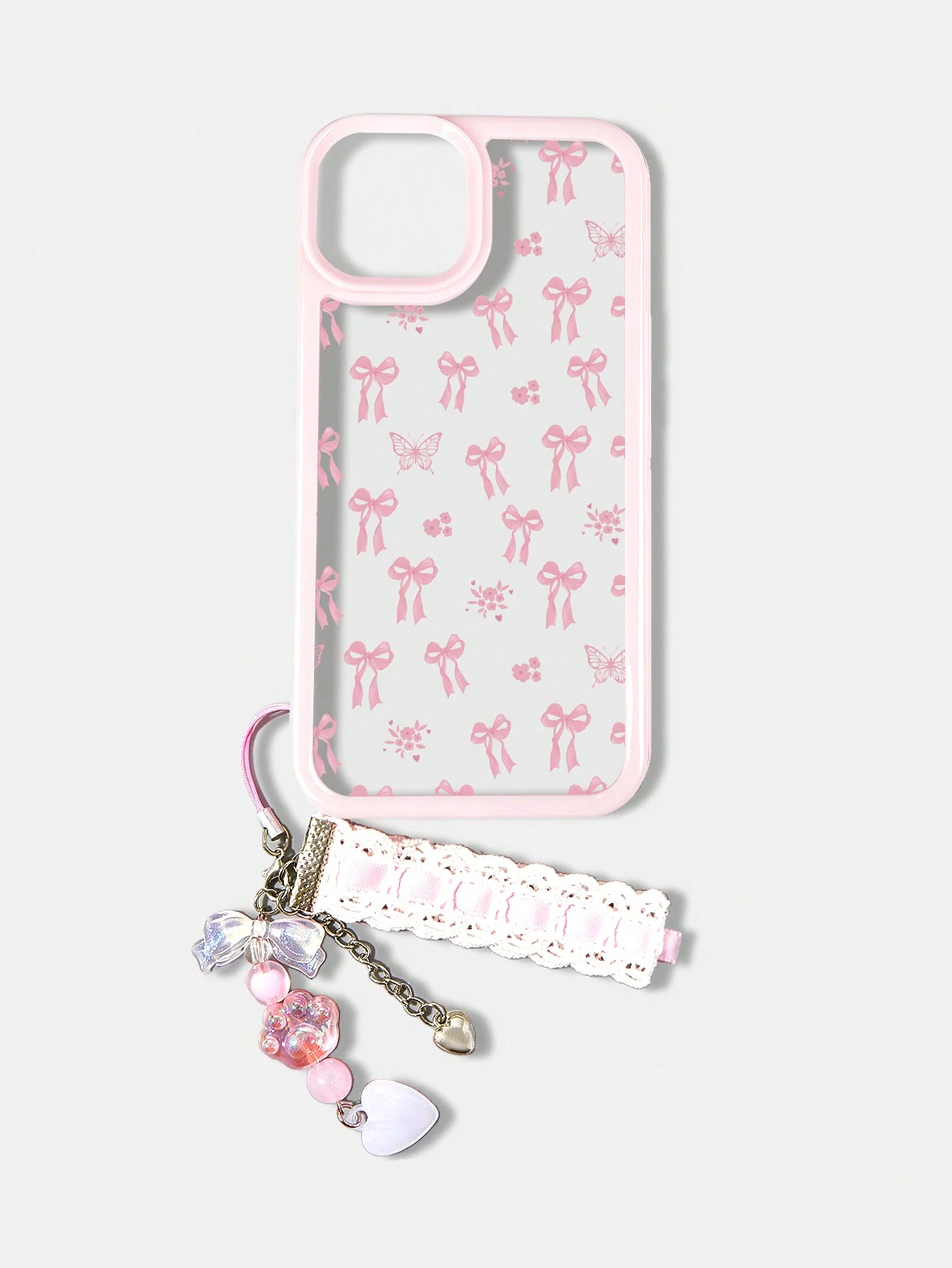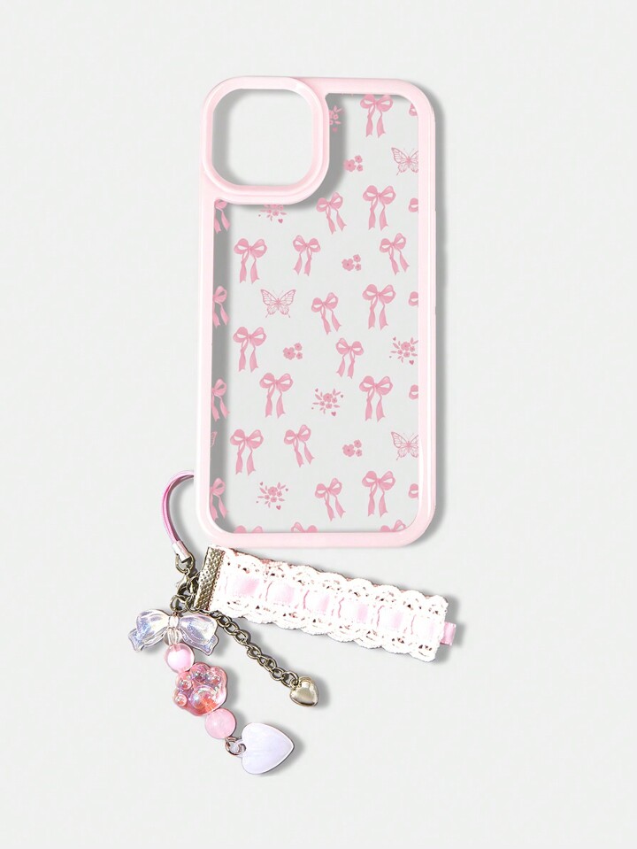 Kawaii 1 pezzo Custodia per telefono con design fiocco rosa, compatibile con 11 12 13 14 15 Pro Max