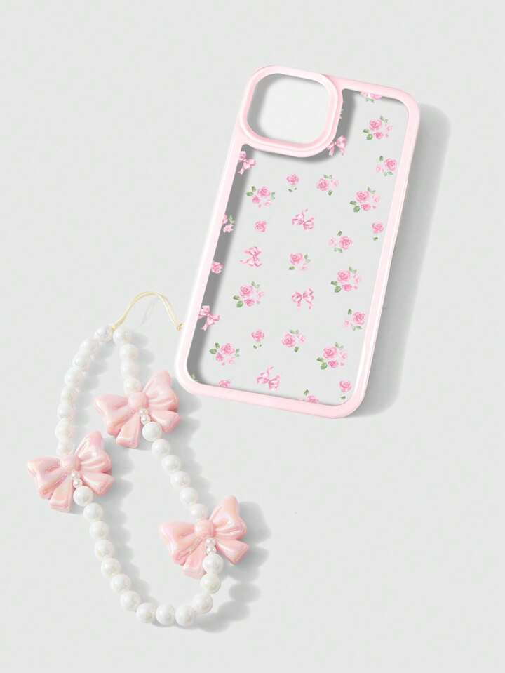 Kawaii 1 pezzo Custodia per iPhone rosa con fiocco a forma di mela, compatibile con iPhone 11 12 13 14 15 Pro Max