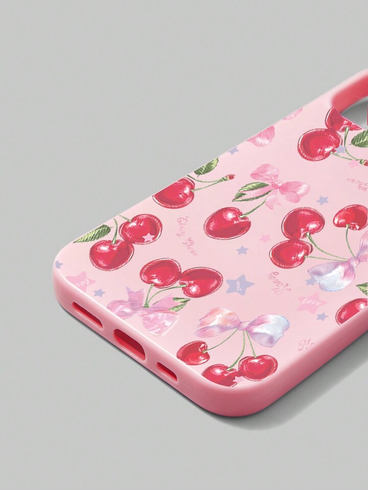 Kawaii 1 pezzo Custodia per cellulare in rosa con design di ciliegie e fiocco compatibile con Apple Iphone 11 12 13 14 15 Pro Max