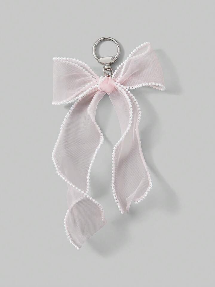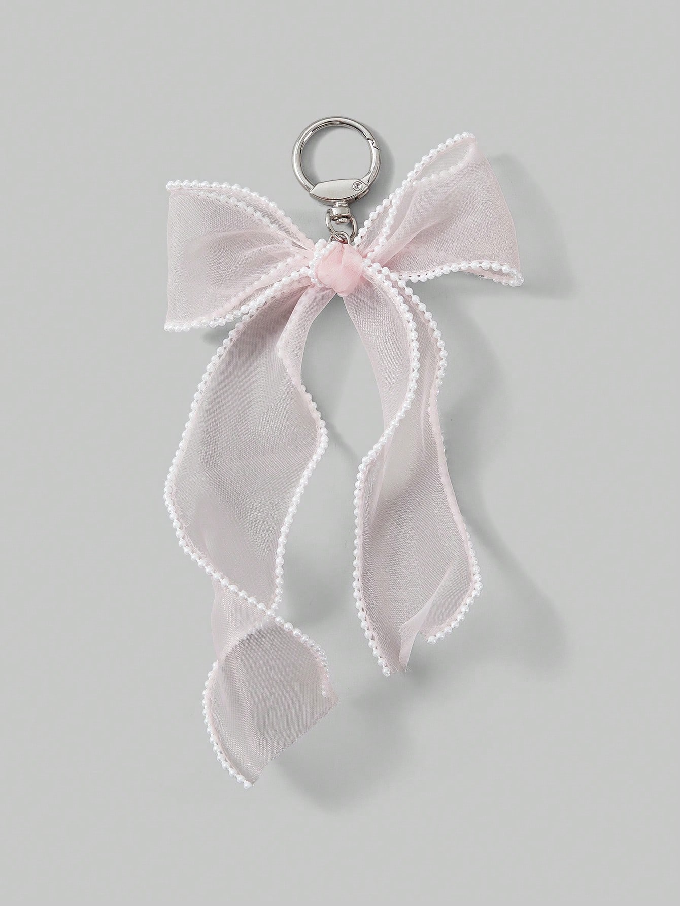 Kawaii 1 pezzo Portachiavi con charm a fiocco di pizzo rosa e perle per borse