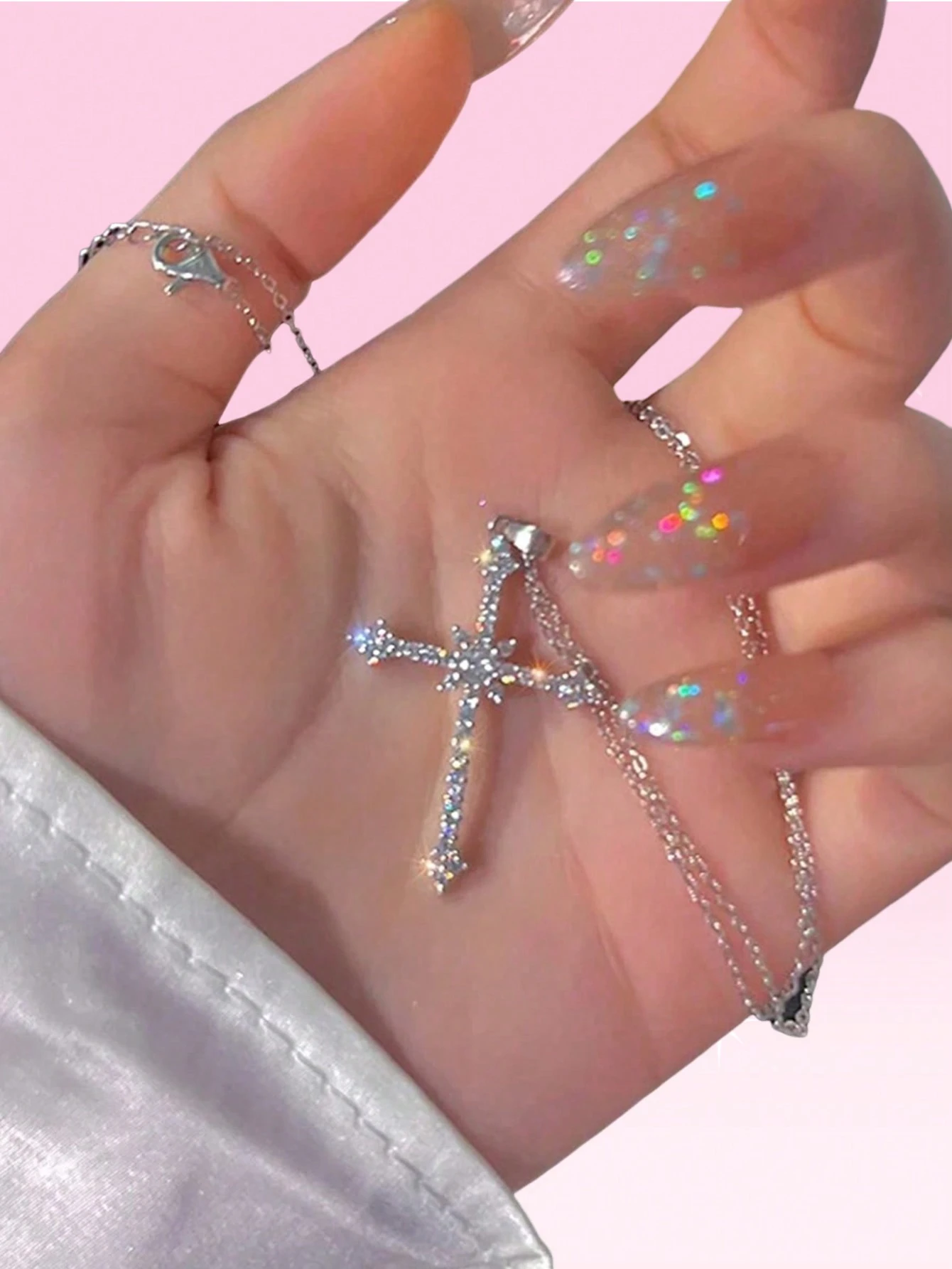 Kawaii 1 pezzo Collane semplice con strass Pendente croce , perfetto per da donna vacanza , appuntamento , e usura quotidiana regalo