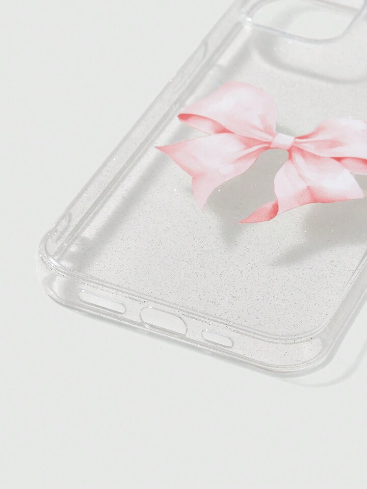 Kawaii 1 pezzo Custodia per telefono trasparente scintillante con fiocco rosa compatibile con Apple Iphone 11 12 13 14 15 Pro Max