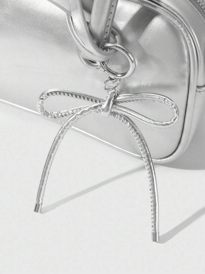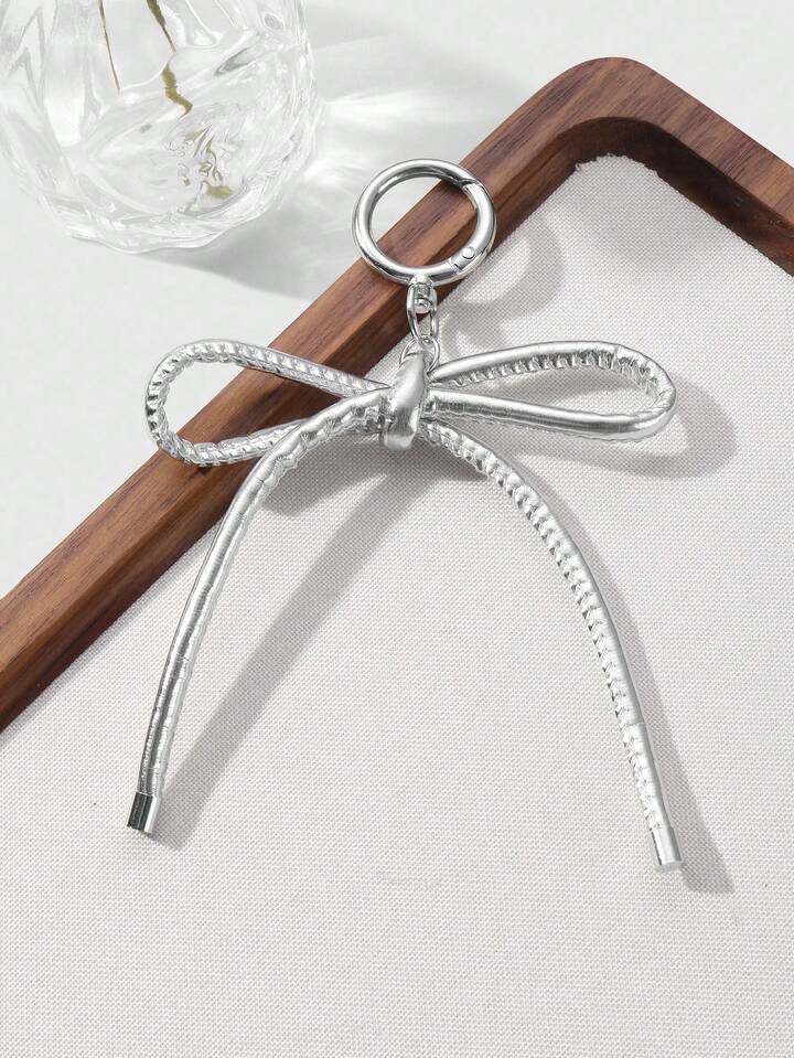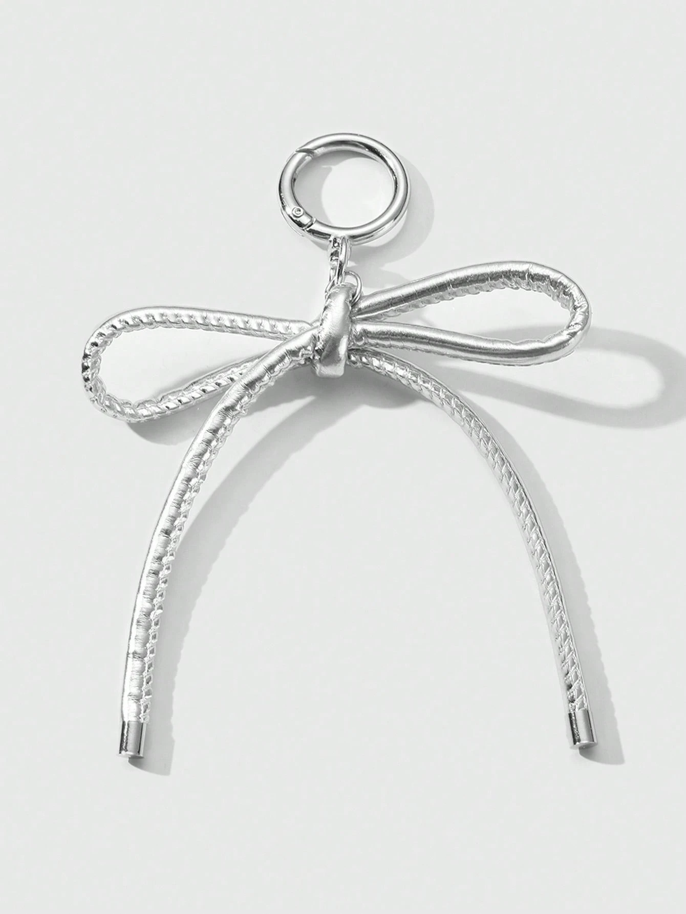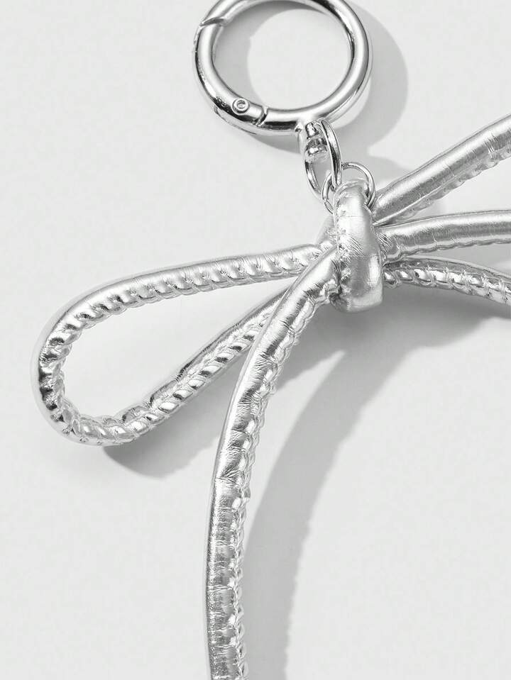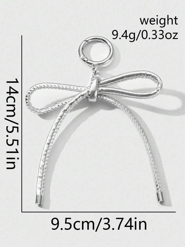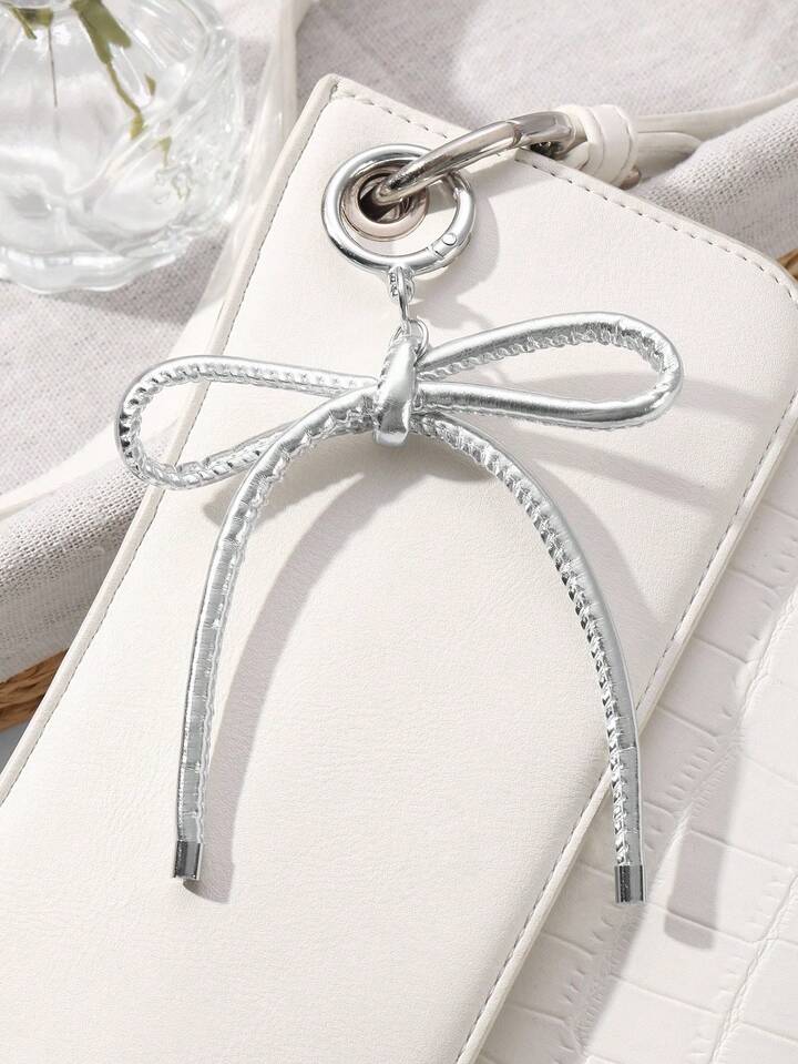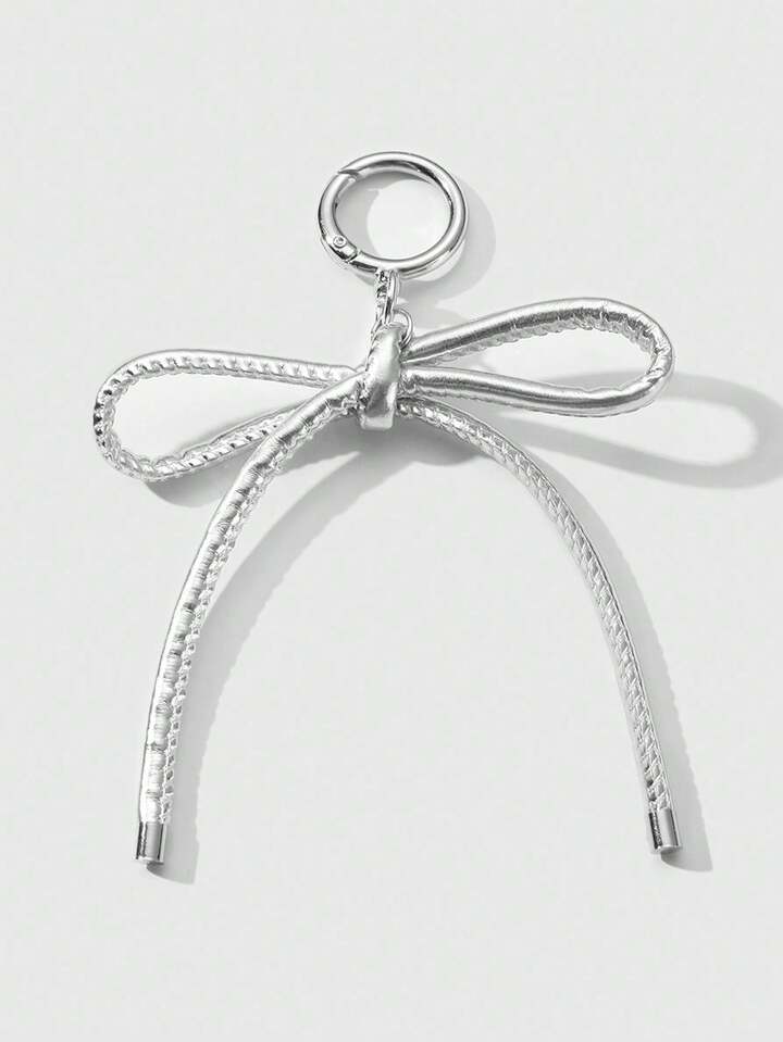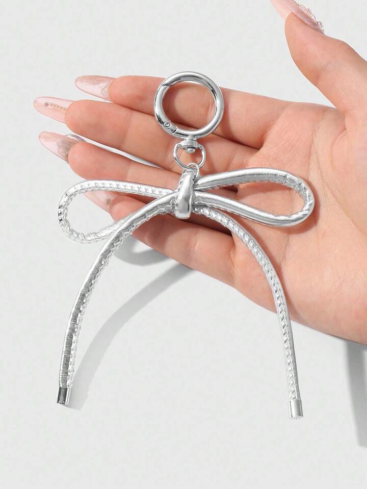 Kawaii 1 pezzo Portachiavi in pelle argento con fiocco, stile minimalista alla moda, realizzato a mano, adatto per le donne come regalo quotidiano o per vacanze
