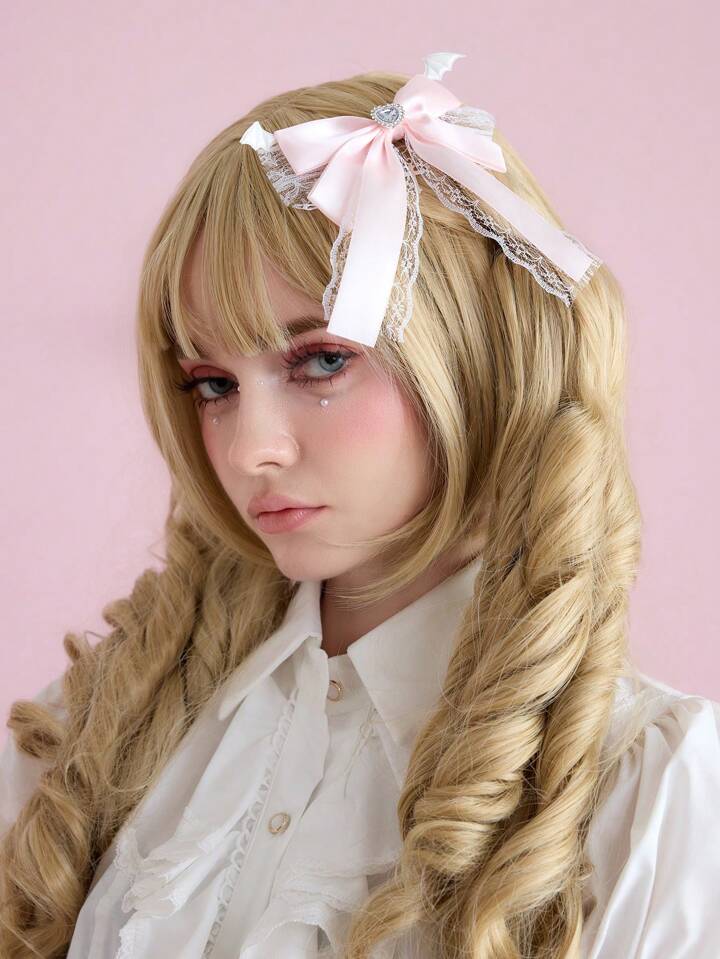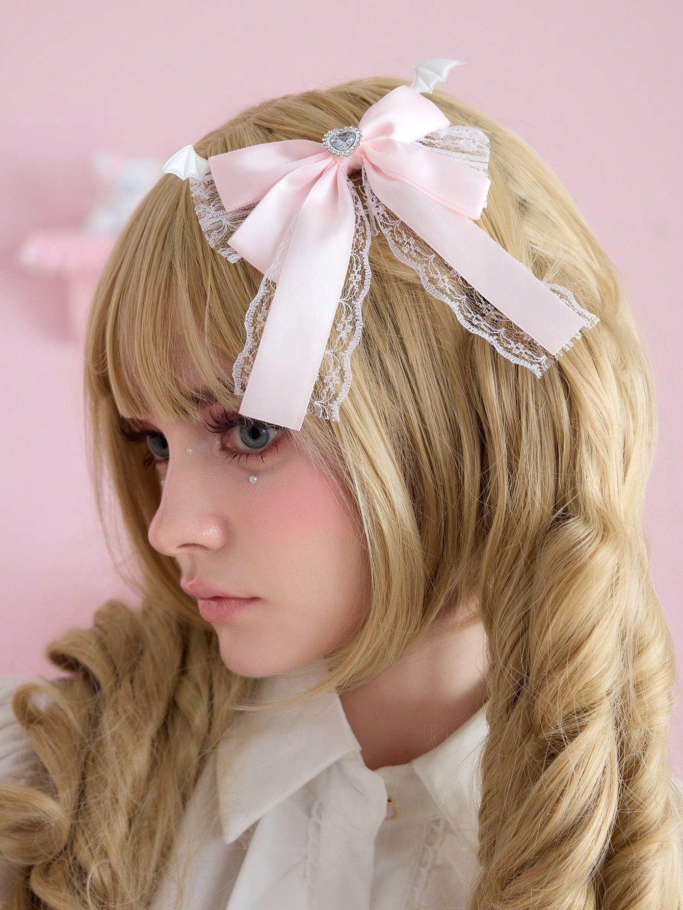 Kawaii 1 pezzo Fermaglio per capelli in stile dark con bordo in pizzo, decorazione fiocco, croce diabolica, accessorio per capelli in stile sottocultura underground