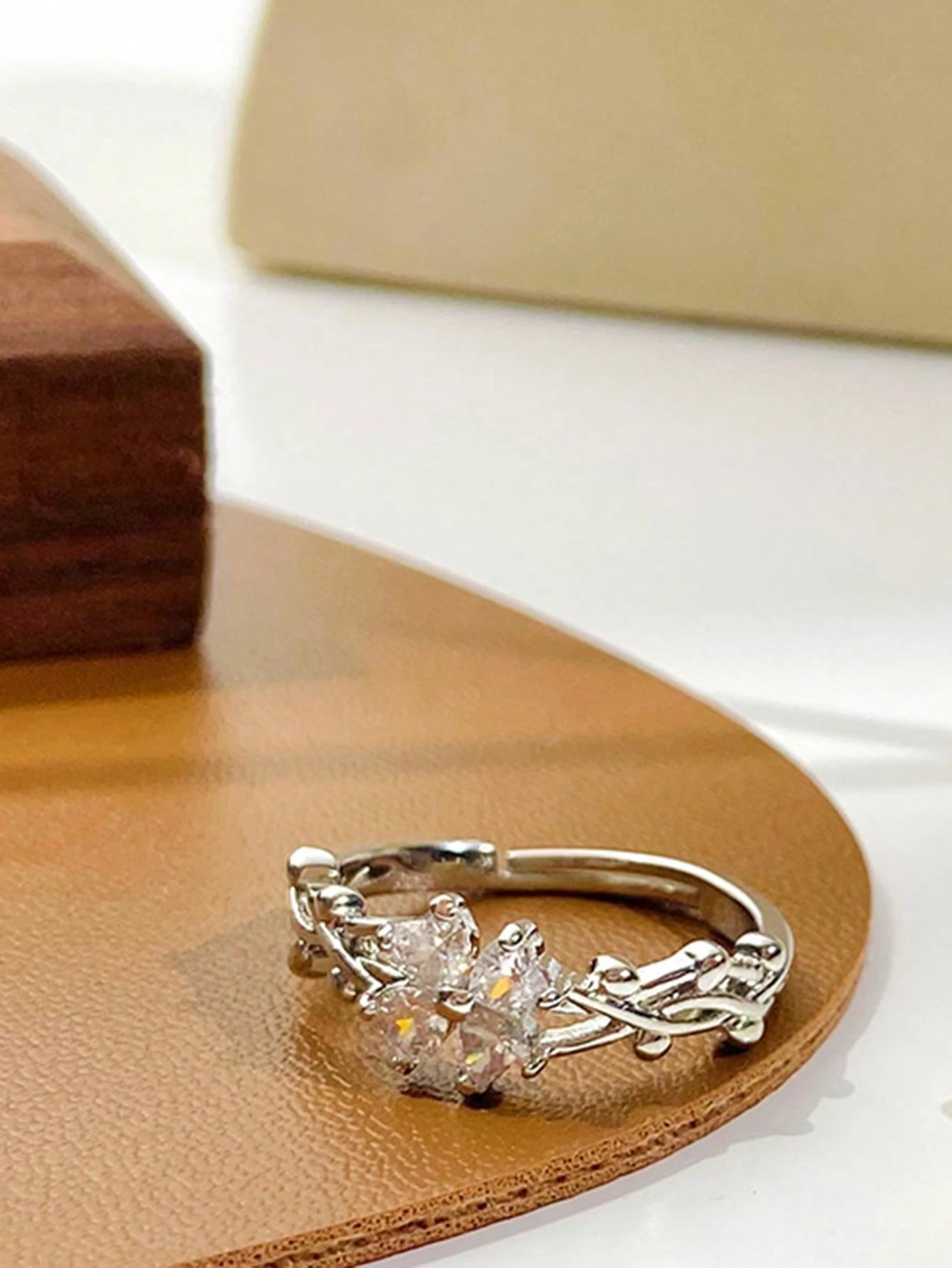 Kawaii 1 pezzo Anello da donna quadrifoglio design regolabile argento sterling