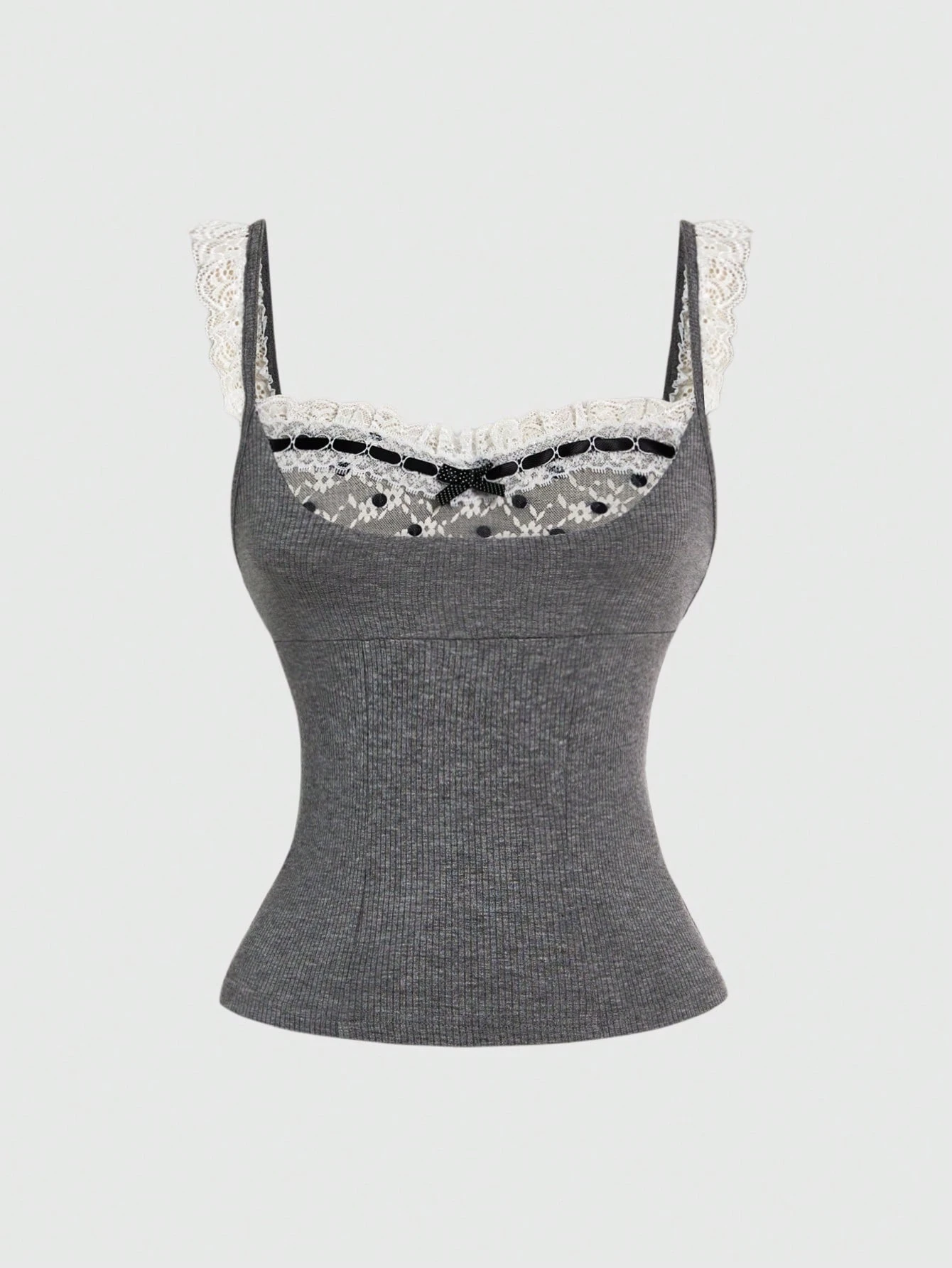 Kawaii 1 pezzo Canotta da donna con bordo in pizzo, sembra composta da due pezzi, adatta per San Valentino