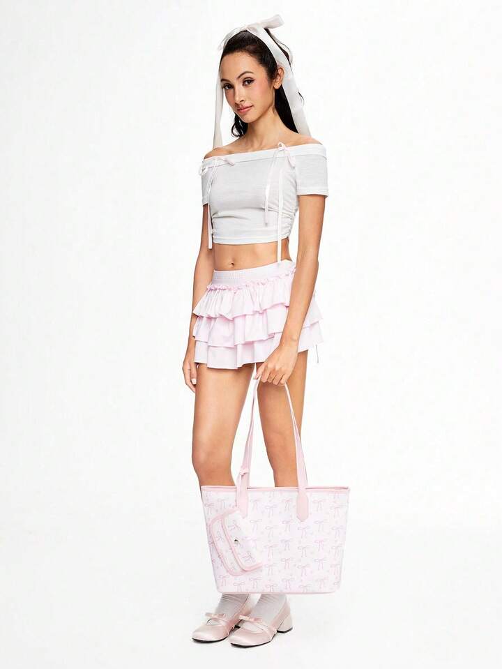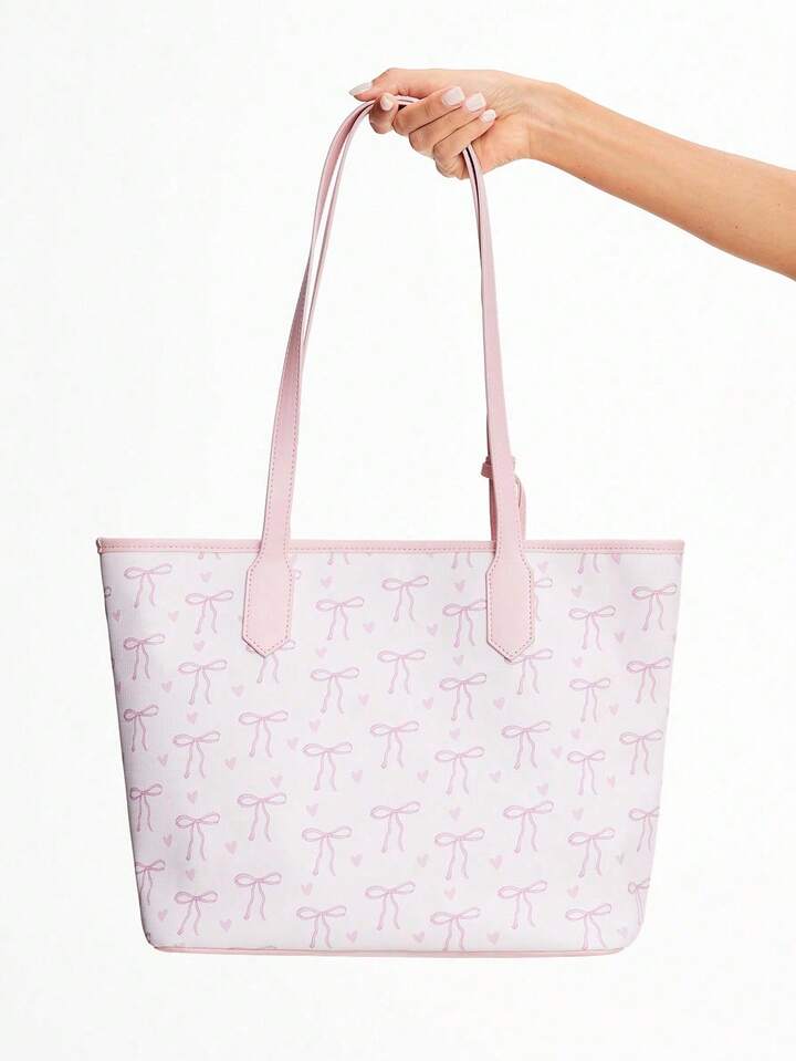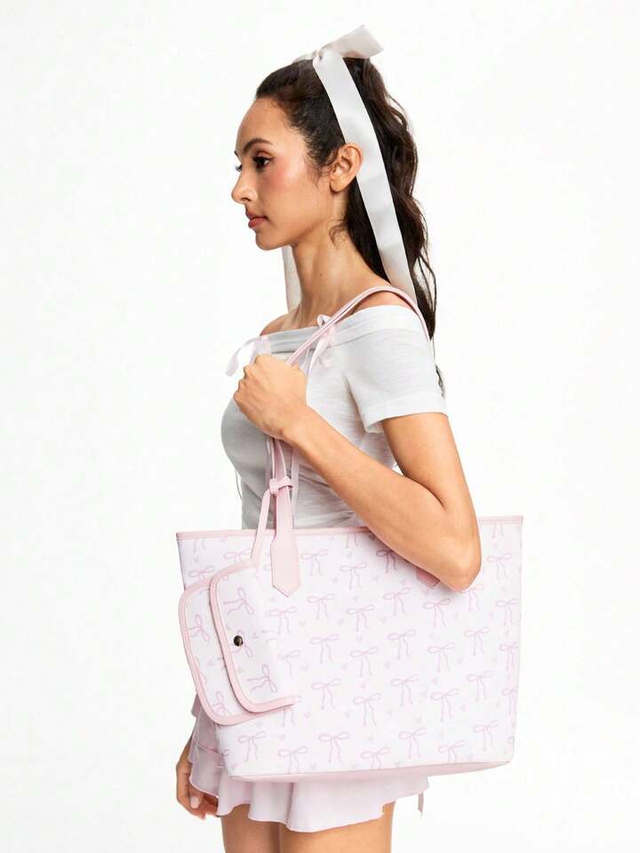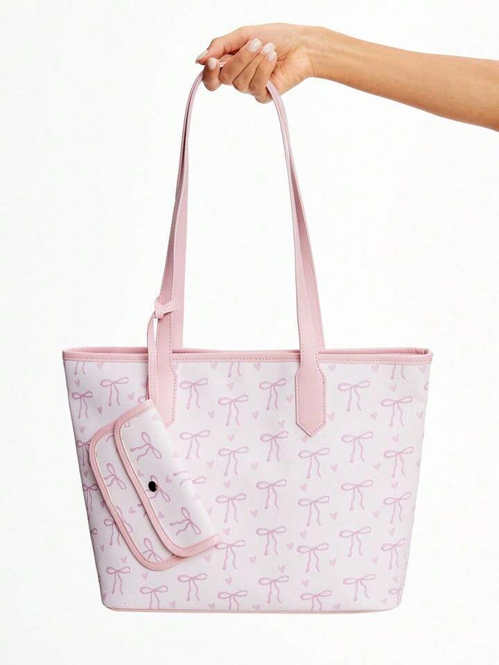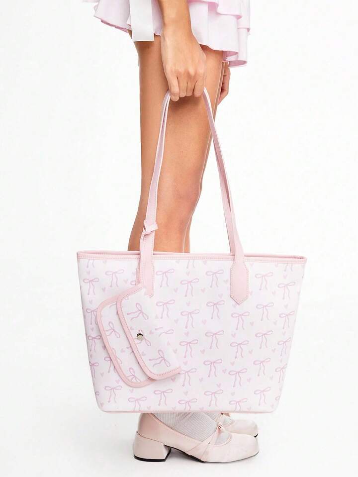 Kawaii 1 pezzo Borsa a tracolla vintage da donna con stampa farfalla carina, grande capacità, con piccola pochette pendente, colore rosa