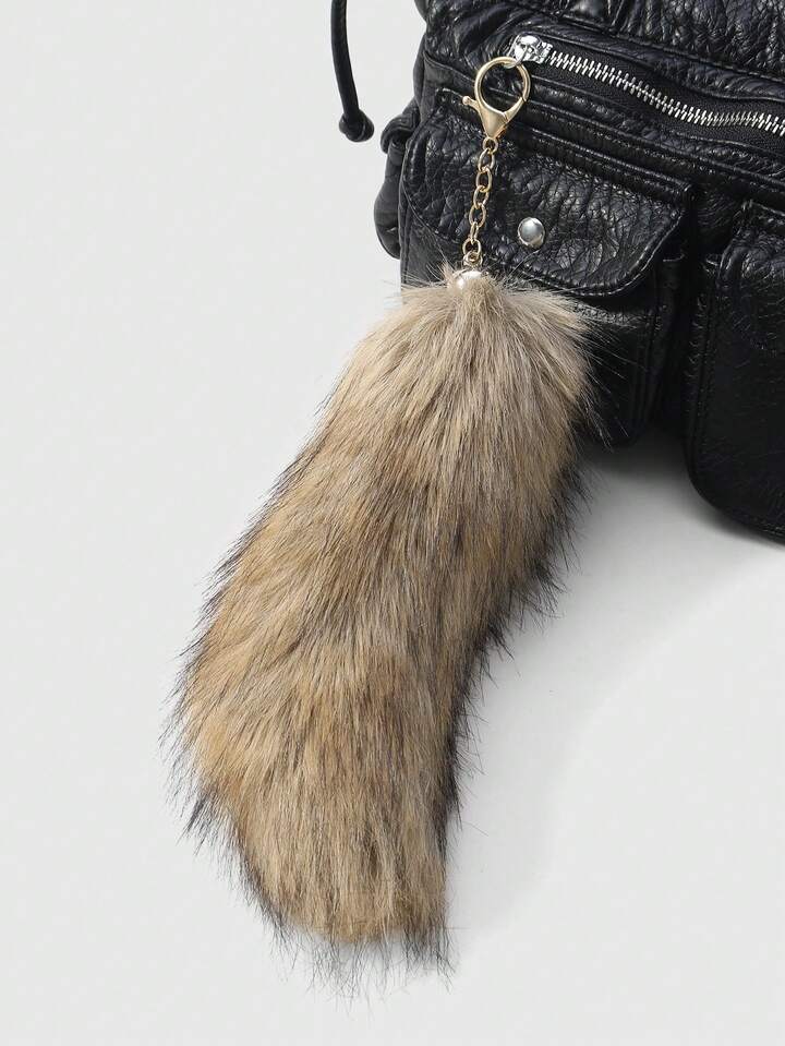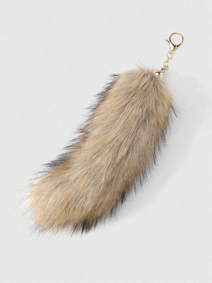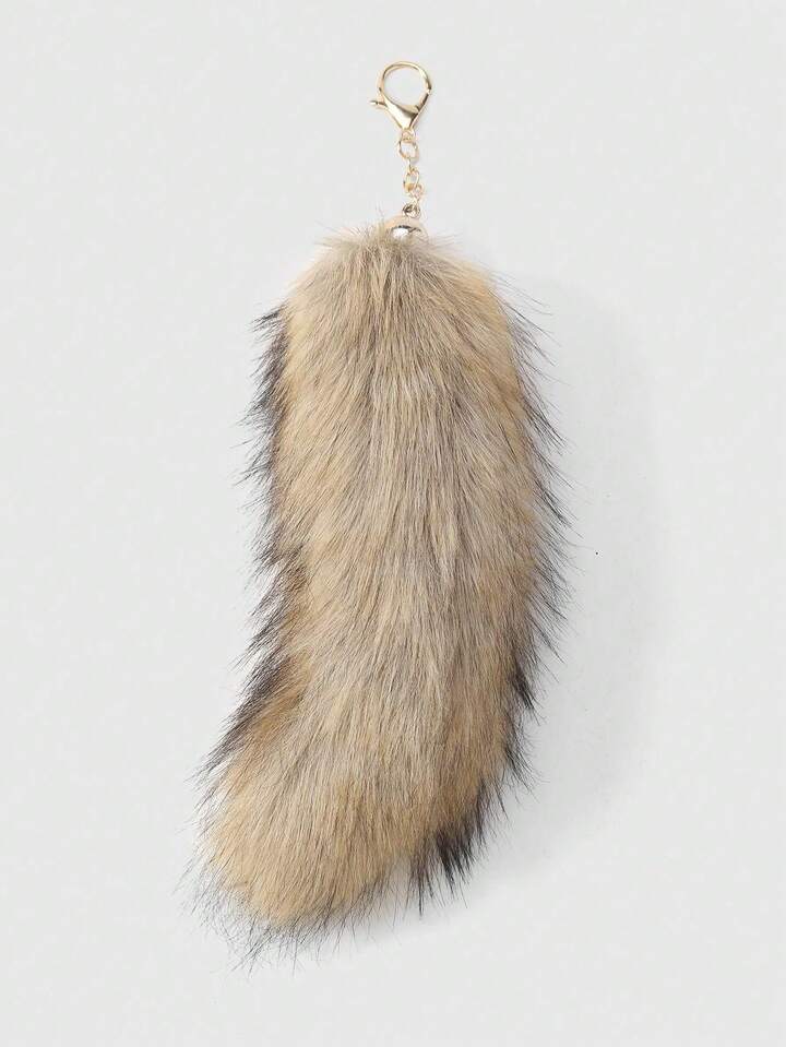 Kawaii 1 pezzo Portachiavi/ciondolo per borsa in stile Y2K retrò, di alta qualità, con morbida pelliccia finta sfumata marrone, a forma di coda di lupo/volpe/procione, adatto per le donne, per uso quotidiano, come regalo per le vacanze