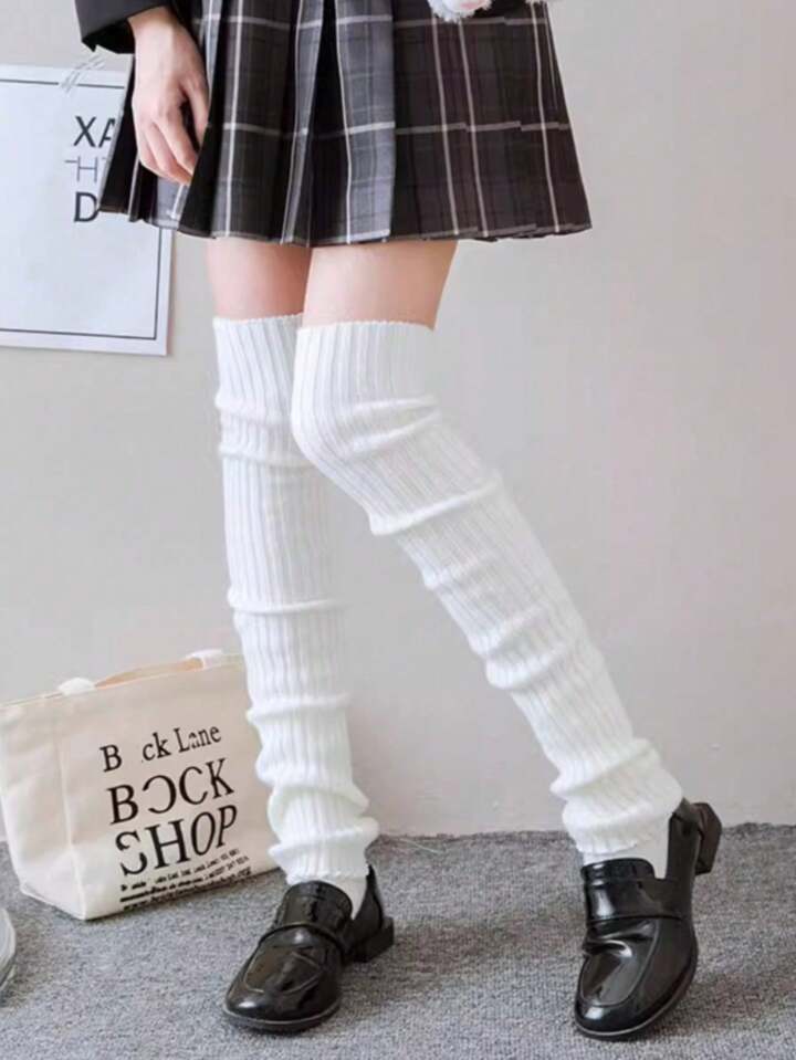 Kawaii (2 Paia) Extra Lungo Copri Gambali Per Donne A Blocchi Di Colore Bianco E Nero
