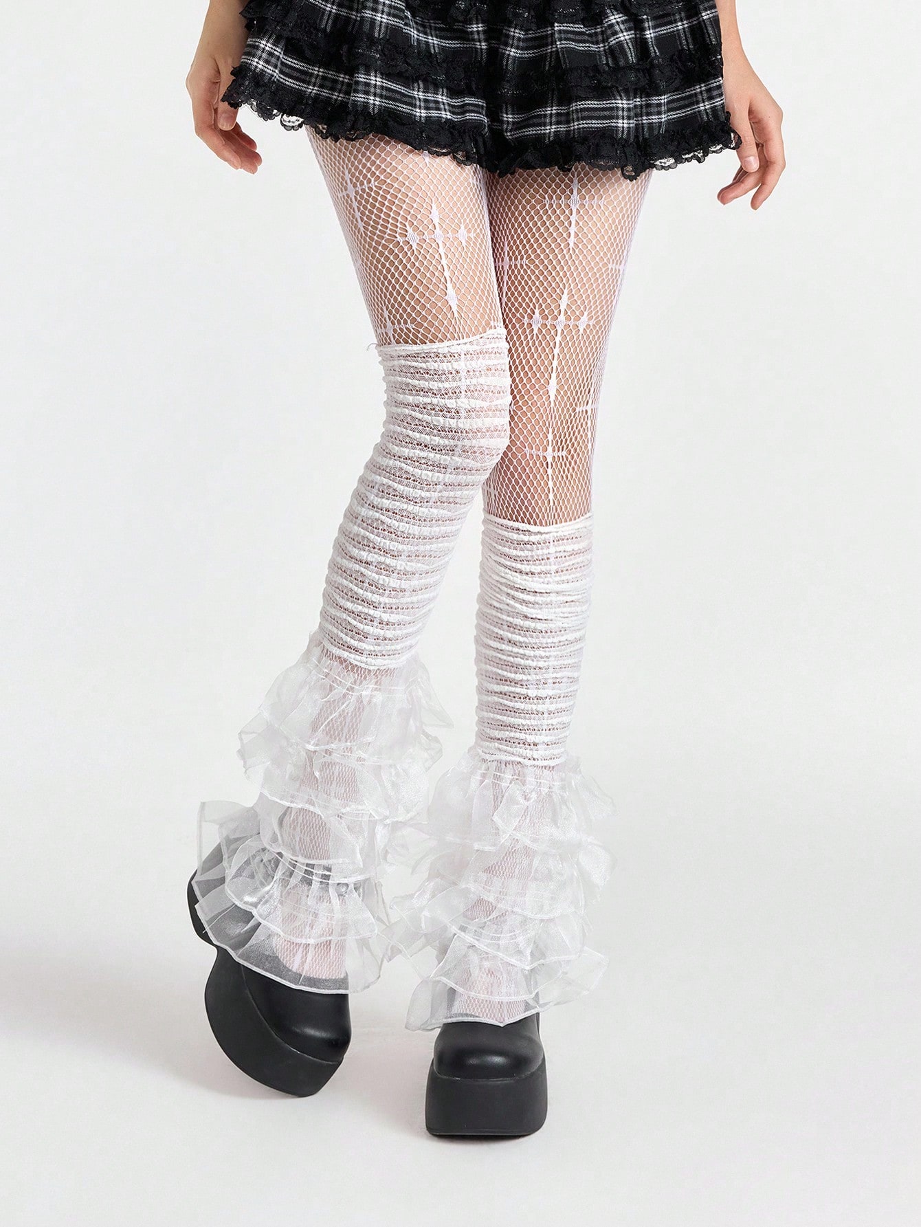 Kawaii 2 paia di collant a rete e calze con bordo in pizzo, in stile Y2K punk, una combinazione di moda, personalizzata e sexy, accessori per abiti da festival musicali estivi