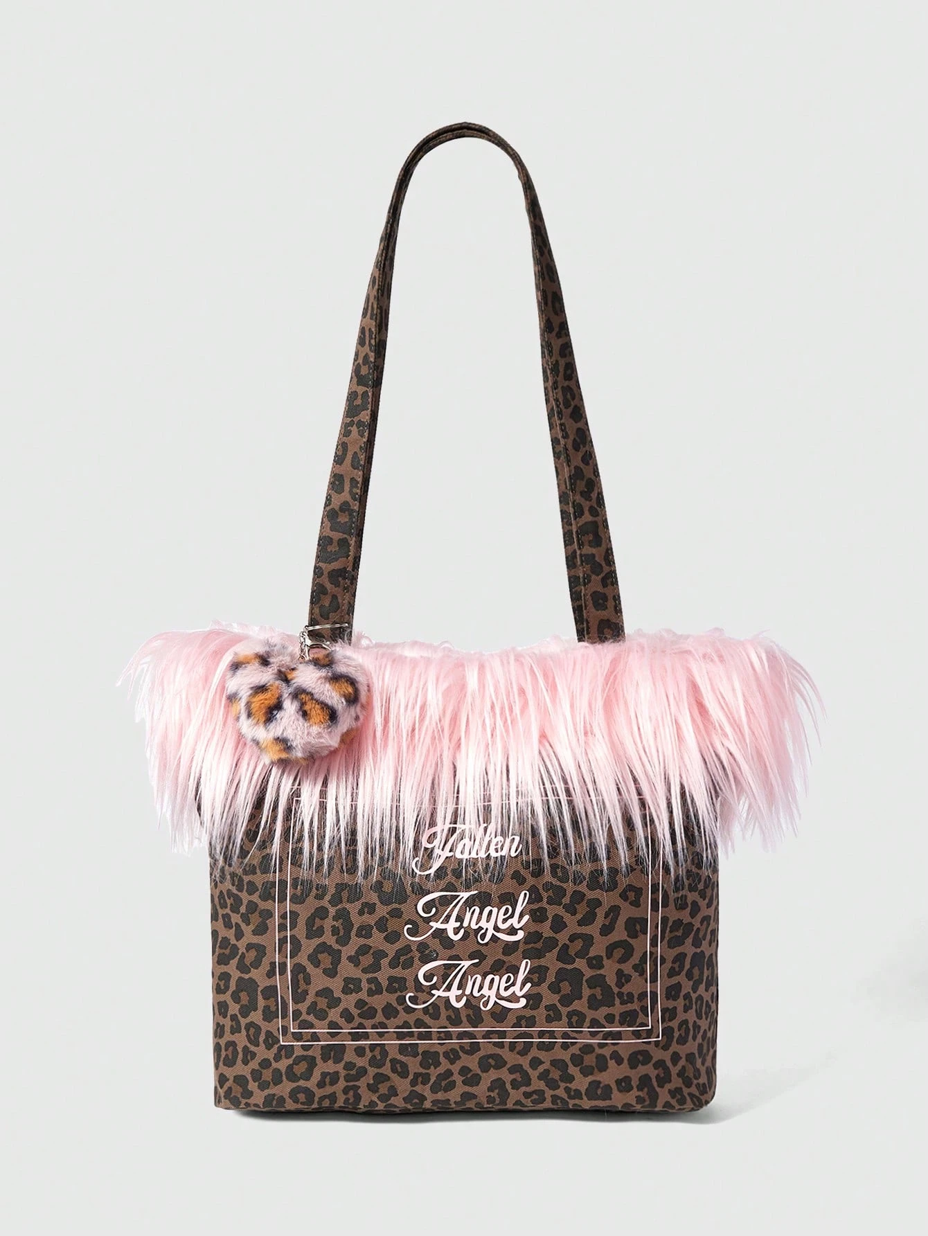 Kawaii 25 pezzi Borsa a tracolla in peluche con stampa leopardata per donna, borsa capiente con pendente a forma di cuore, adatta per autunno/inverno