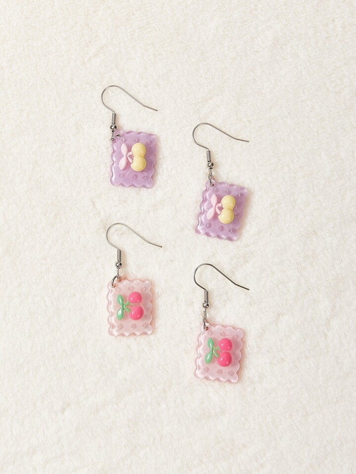 Kawaii 2 paia Orecchini pendenti decorato ciliegia con orlo smerlato