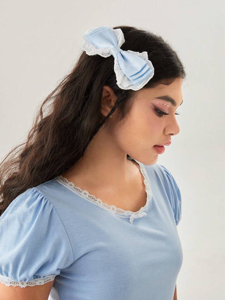 Kawaii 2 pezzi Fermaglio per capelli a coccodrillo con decorato fiocco