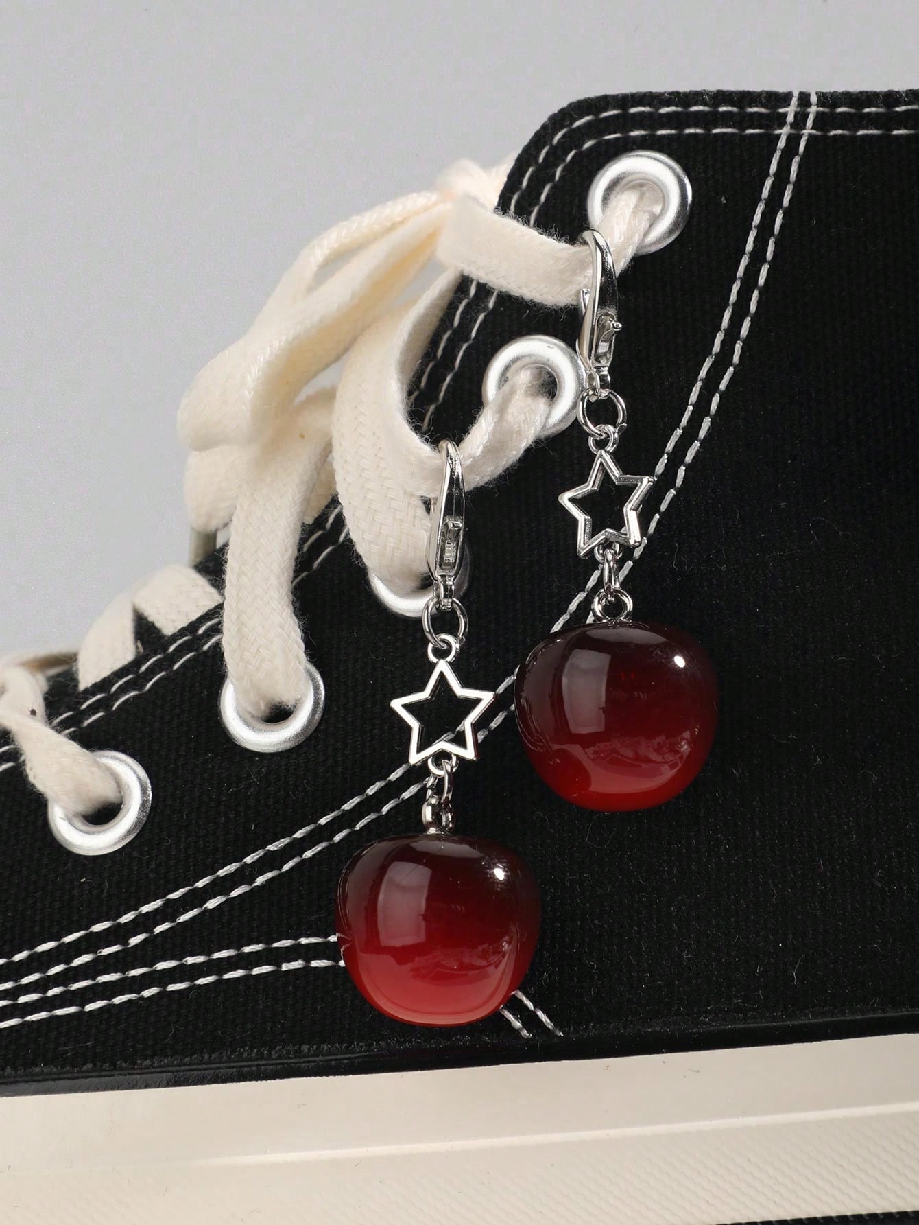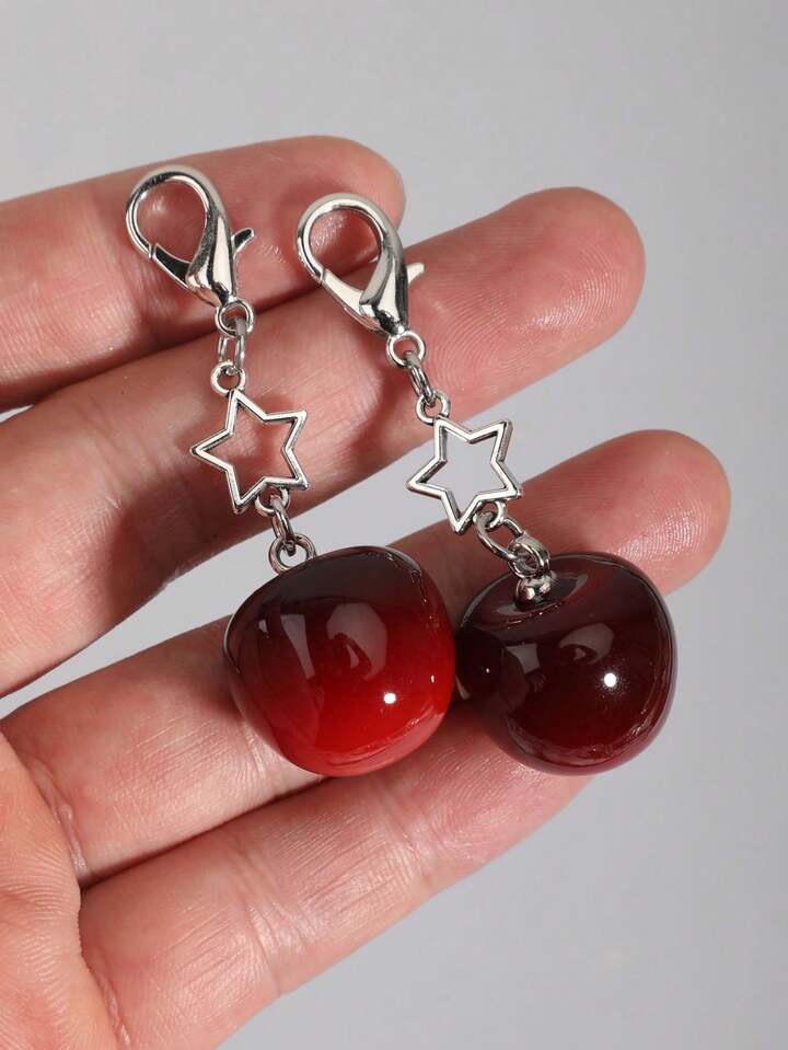 Kawaii 2 pezzi Ciondoli a forma di ciliegia e stella per scarpe, portachiavi, decorazione per borse