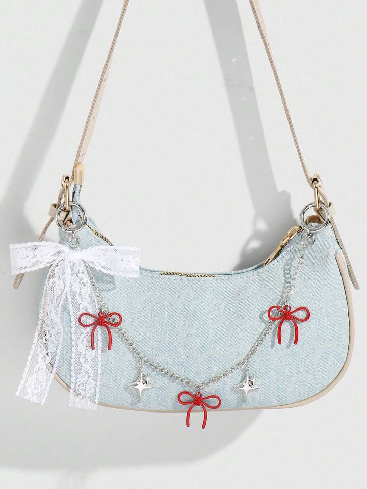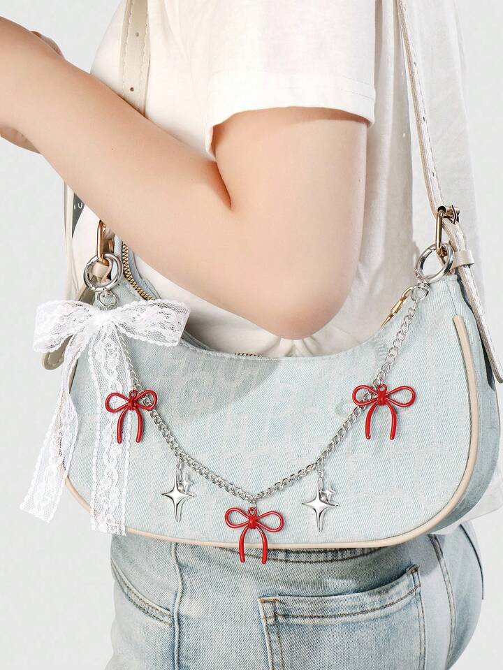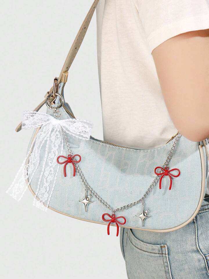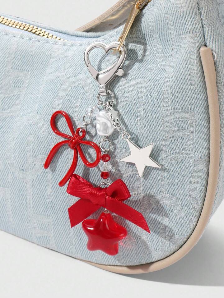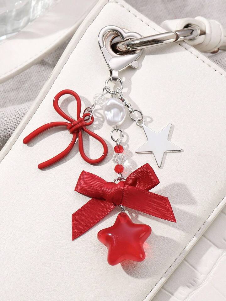 Kawaii 2 pezzi Set di portachiavi/pendenti eleganti e alla moda con farfalla in pizzo, catena a forma di stella e cuore in resina con farfalla rossa in pizzo, accessorio versatile e alla moda, idea regalo per donne