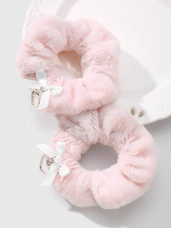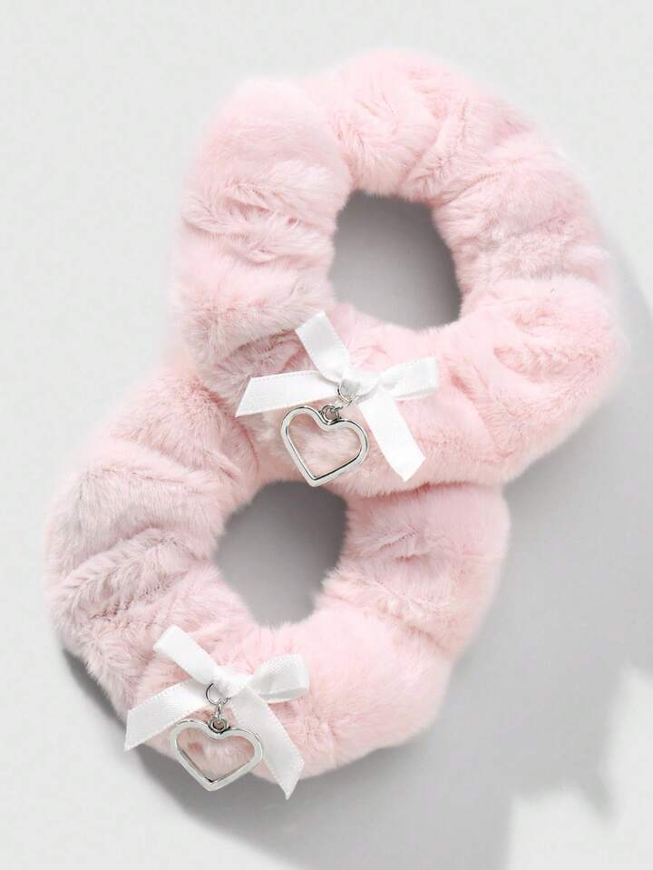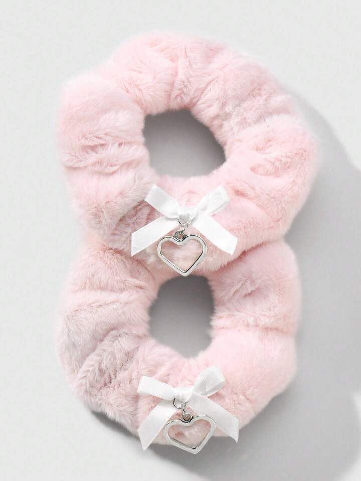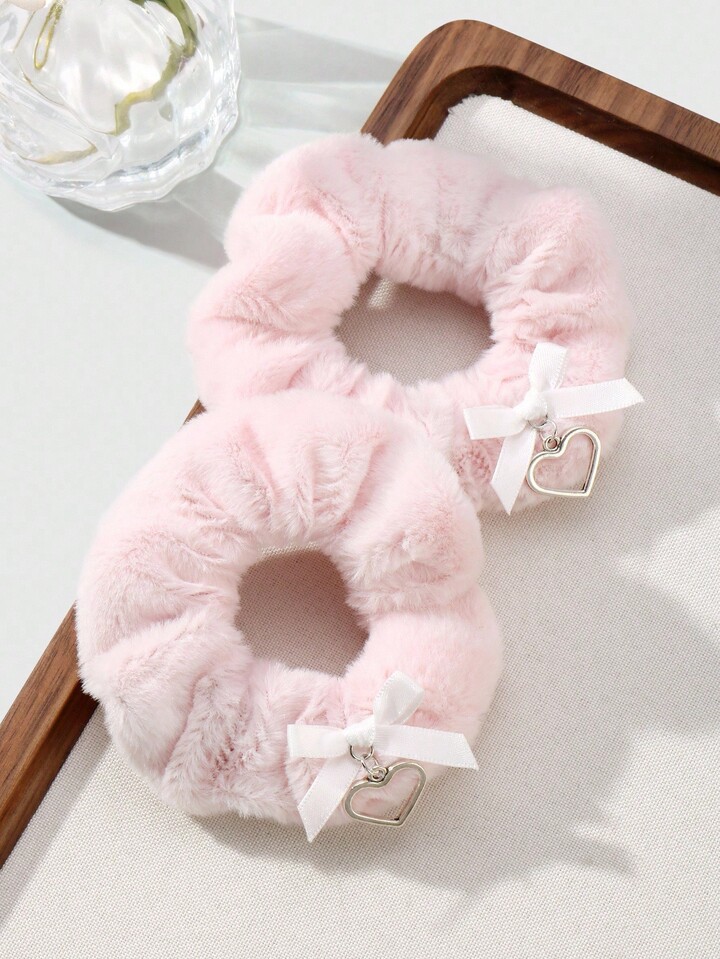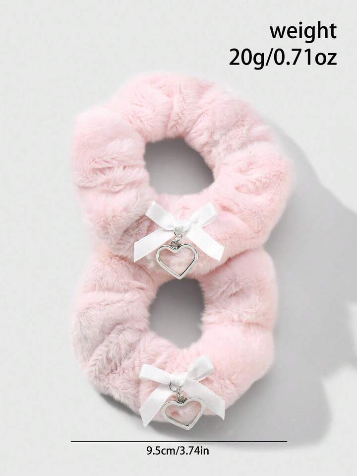 Kawaii 2 pezzi/set Accessori per capelli scrunchie stile college minimalista rosa, fiocco in velluto, cuore cavo, versatili per acconciature, adatti per donne, ragazze, uso quotidiano, regalo per le vacanze