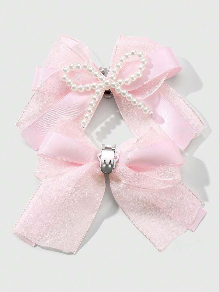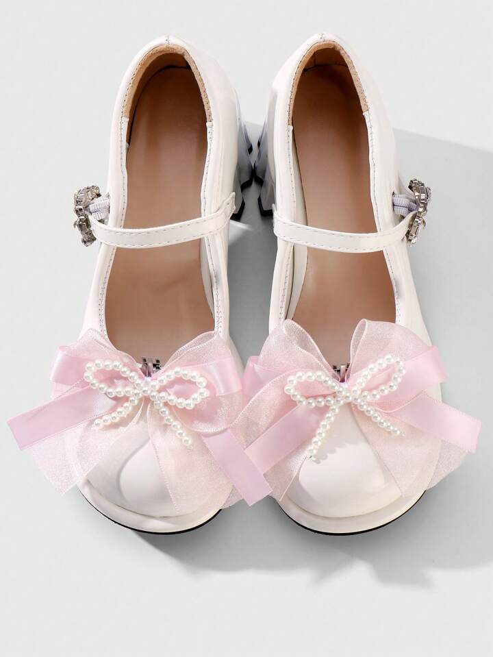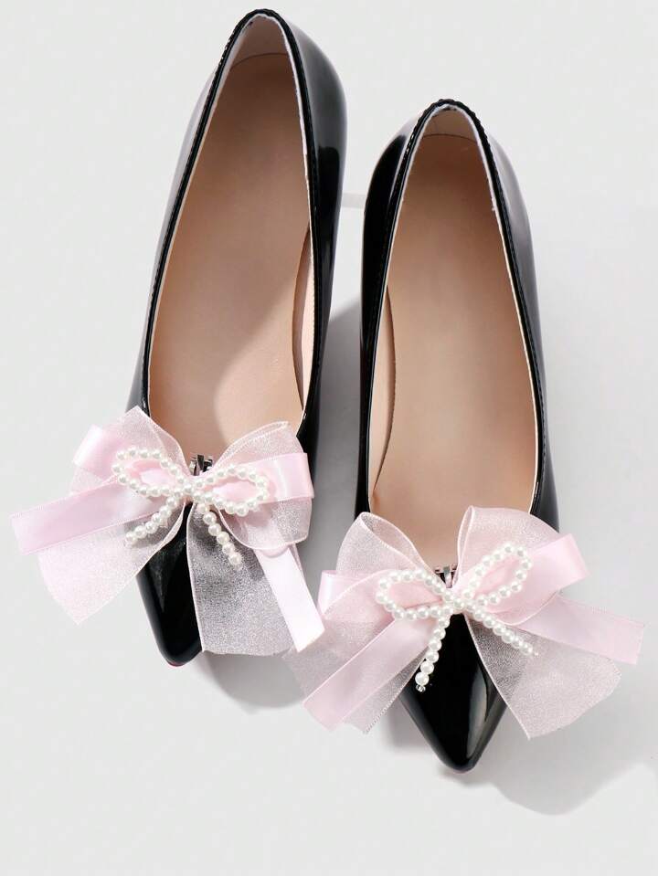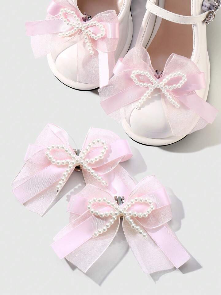 Kawaii 2 pezzi/set Decorazioni da scarpe eleganti e versatili per ragazze, fatti a mano con perle bianche e nastrini in rete, adatti per uso quotidiano e regali per donne