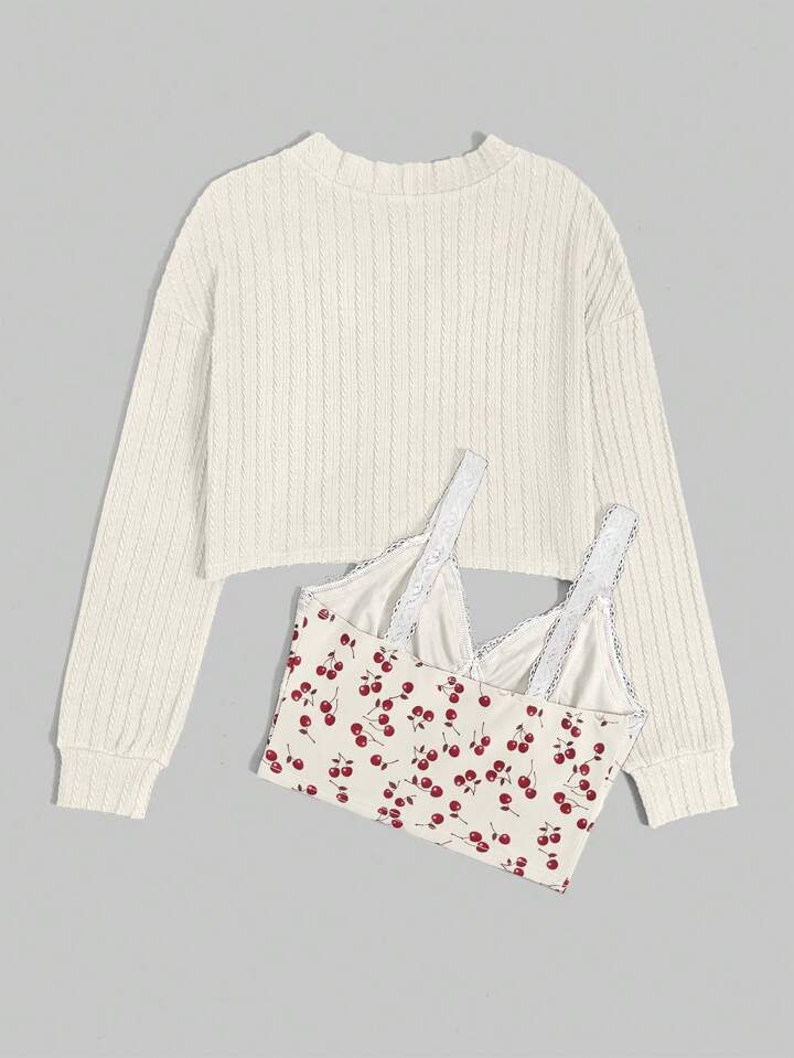 Kawaii 2 pezzi Set giacca con bottoni e canottiera con ricamo a ciliegie carino per donne