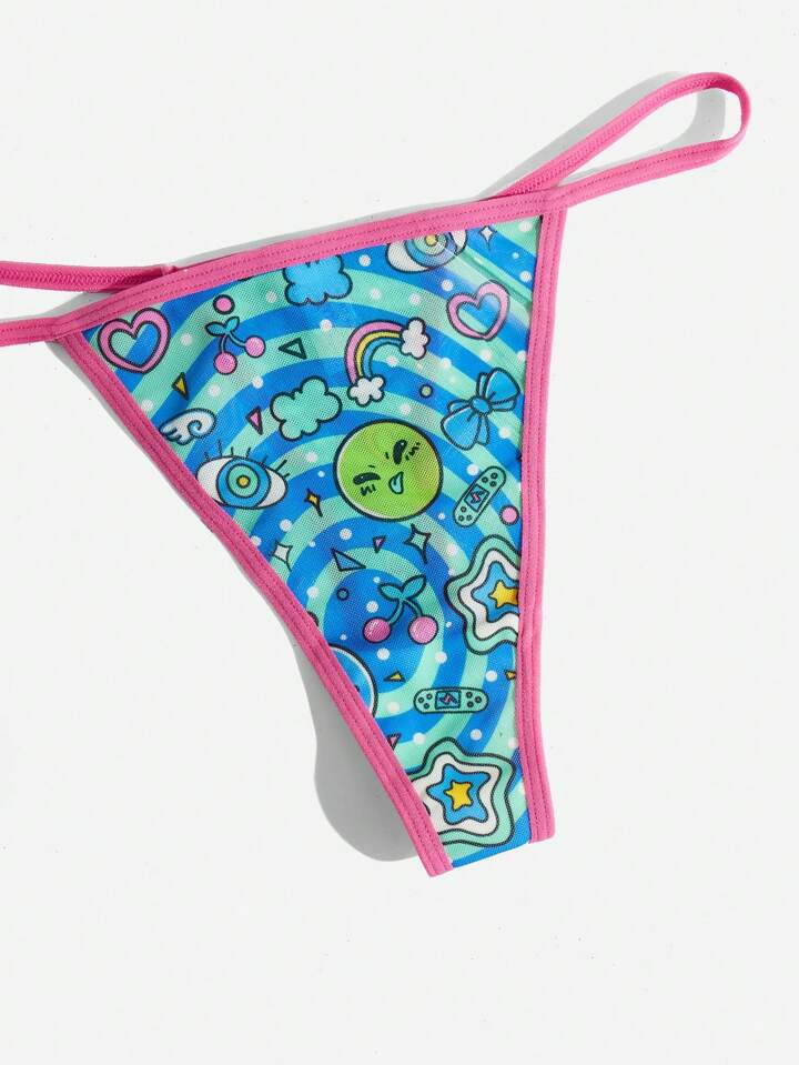 Kawaii 3 pacchi Perizoma con stampa alieno bordo a contrasto