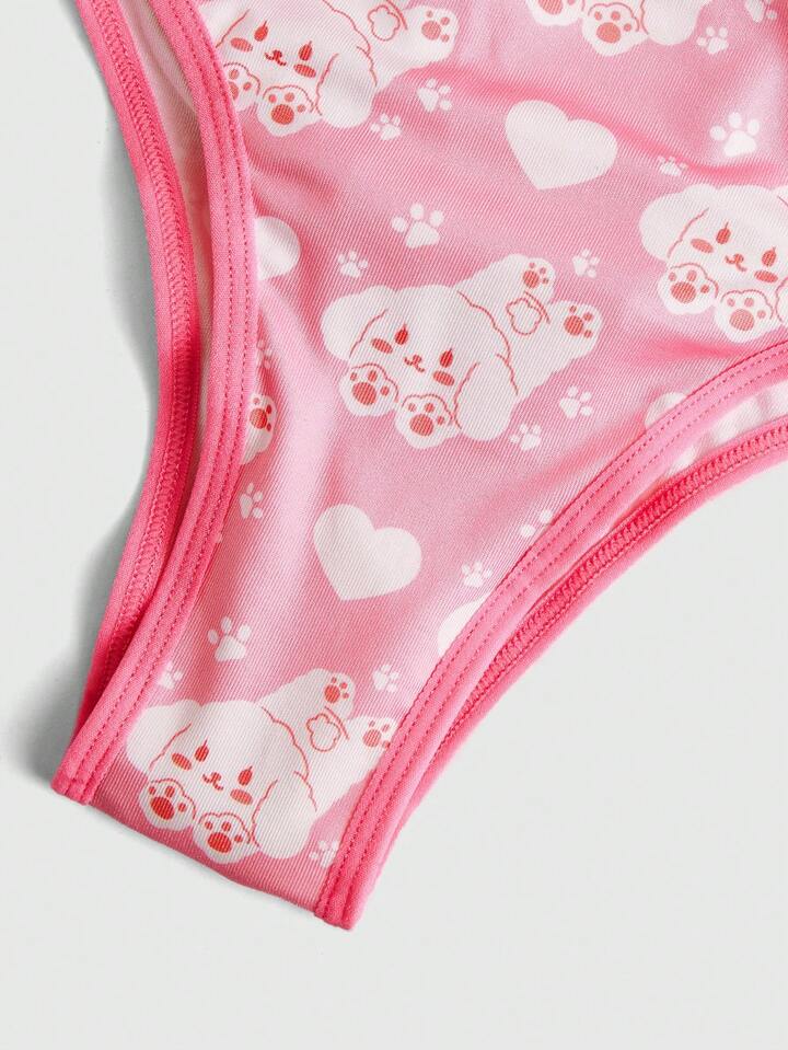 Kawaii 3 pacchi Set mutandine con grafica fumetto bordo a contrasto