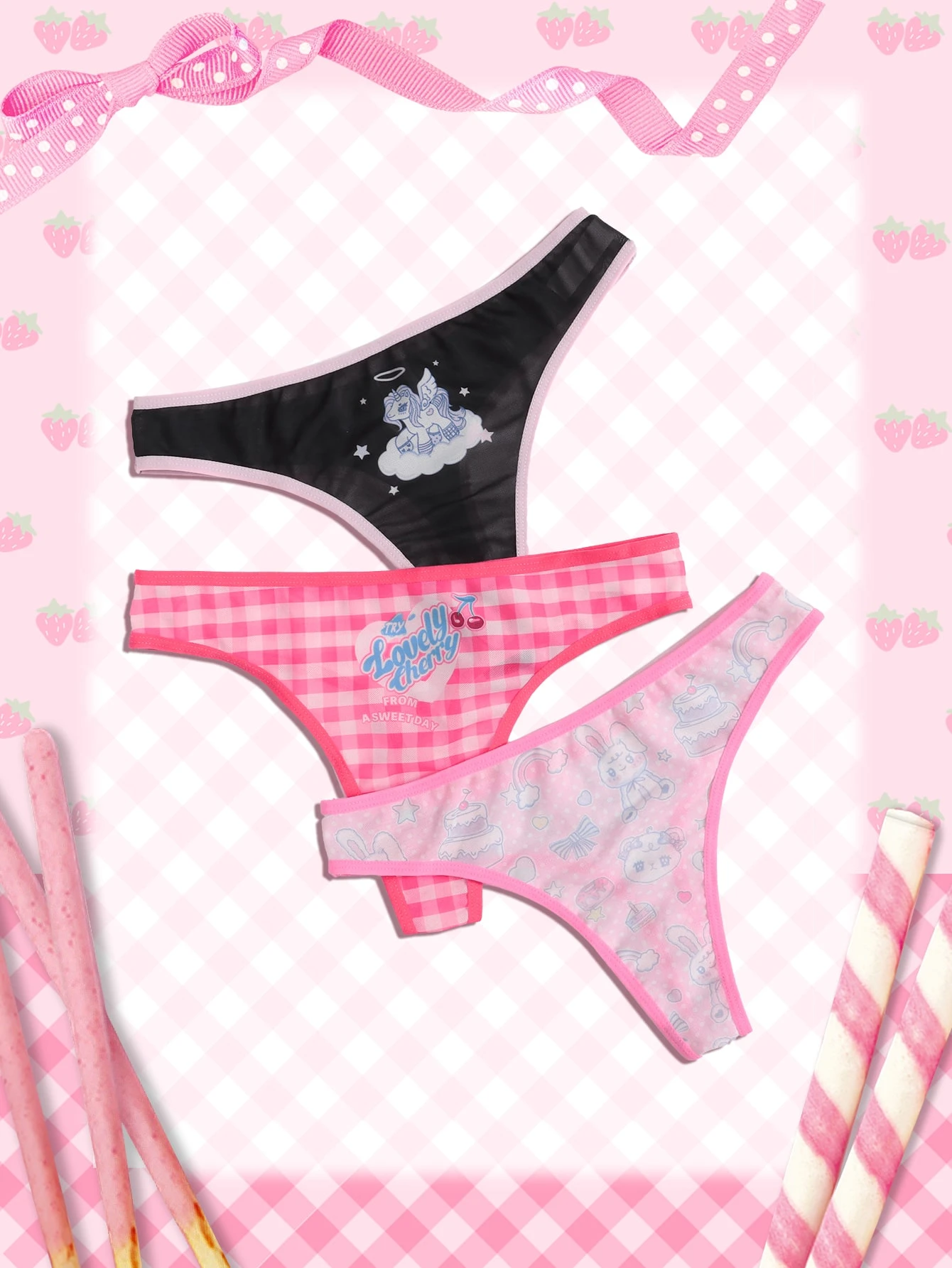 Kawaii 3 pacchi Set mutandine lettere con grafica fumetto a quadri mesh