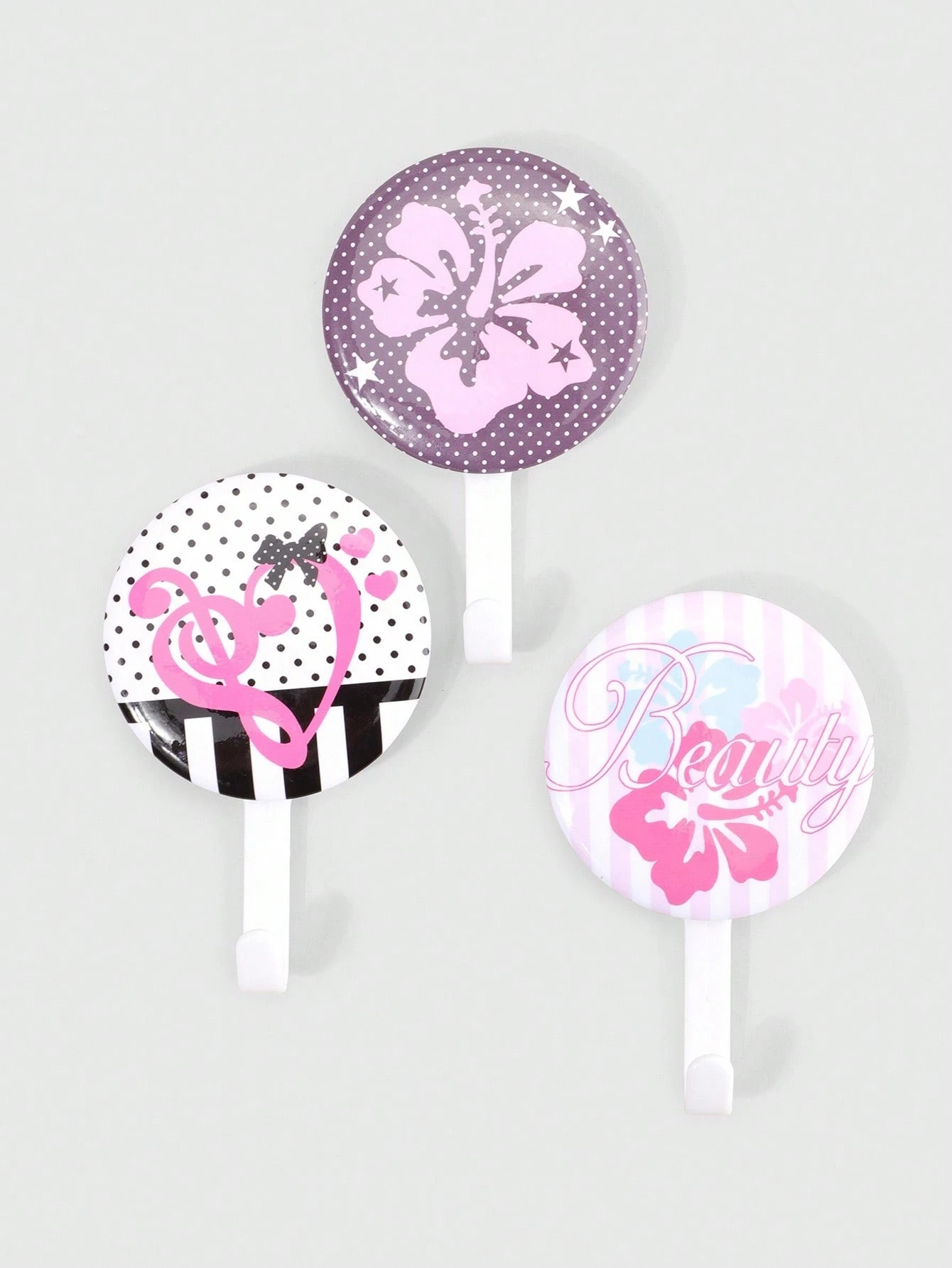 Kawaii 3 pezzi Ganci a ventosa con design di note musicali e fiori