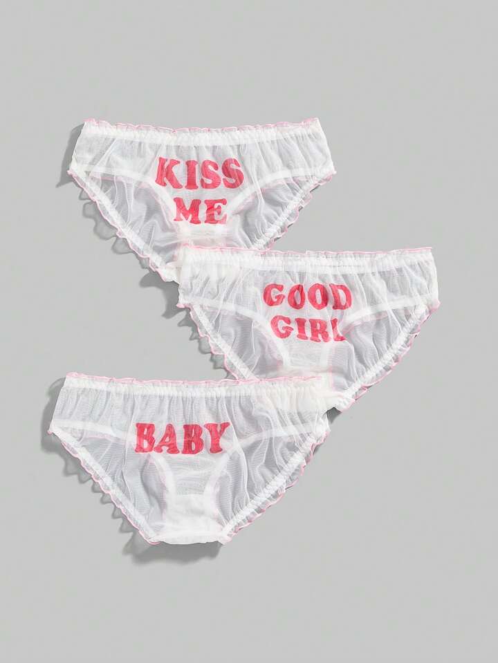 Kawaii 3 pezzi di perizoma in rete da donna con slogan dolci e carini
