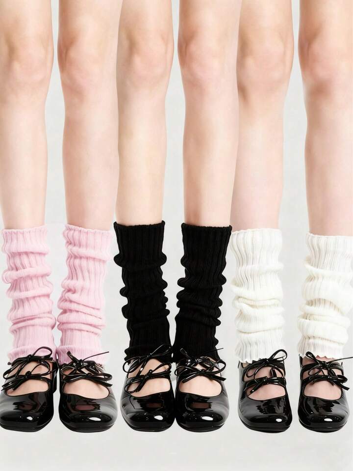 Kawaii 3 pezzi Scaldamuscoli donna tinta unita