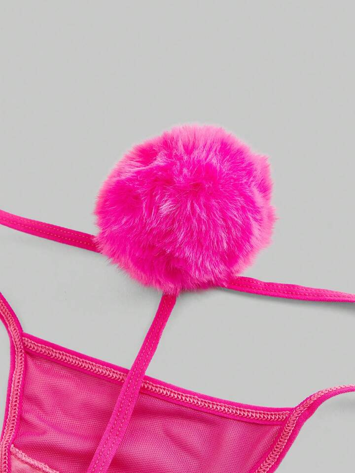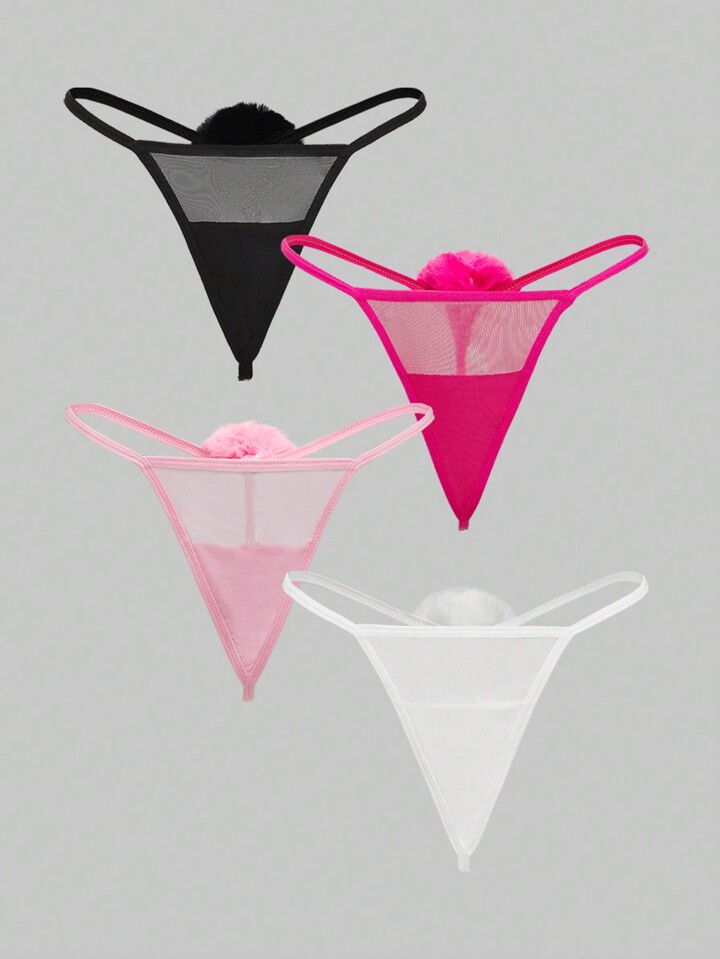 Kawaii 4 pezzi/confezione Mutandine sexy da donna con contrasti di colore e simpatici pon pon a forma di coda di coniglio