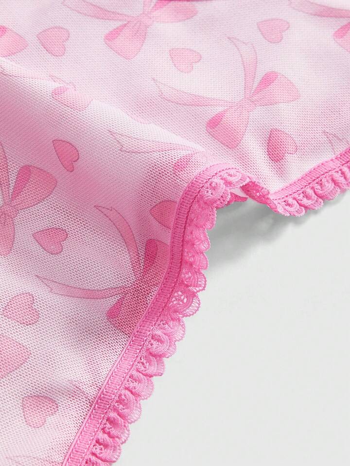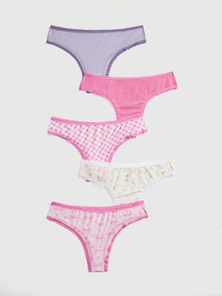 Kawaii Set di 5 pezzi di biancheria intima da donna con stampa floreale, toppe in pizzo e rete traspirante, stile fresco, adatta per primavera/estate